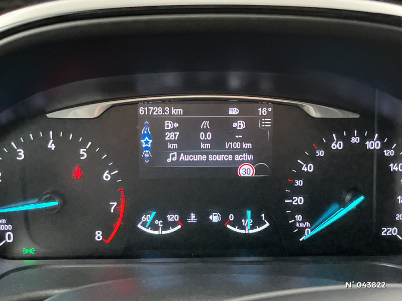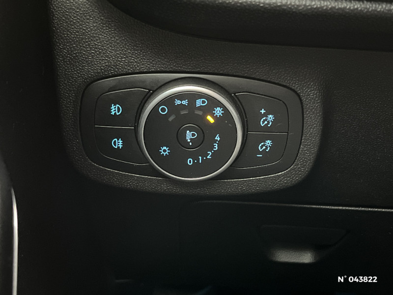 Sellerie tissu noir Ellow avec renforts latéraux Domo / Pack Assistance 1R / Pack Visibilité / Feux antibrouillard AV avec fonction éclairage d'angle / Système audio SYNC 3 avec Navigation, écran tactile 6.5", 2 ports USB commandes vocales, compatible AppLink, Apple CarPlay et Androïd auto / Tapis de sol AR / Console centrale avec accoudoir et rangement intégré / Jantes alliage 16", 10 branches avec pneus 195/55 R16 / Système audio Ford SYNC avec écran tactile 8", 2 ports USB, compatible AppLink, Apple CarPlay et Android auto / Pare-chocs couleur carrosserie / Poignées de portes extérieures couleur carrosserie / Rétroviseur intérieur électrochrome / Jantes alliage 16", pneumatiques 195/55 R16 / Volant gainé cuir 3 branches / Kit de réparation pneumatique / Lèche-vitres chromés / Bouton de démarrage "Ford Power" / Eclairage d'ambiance intérieur / Tapis de sol AV / Indicateur de changement de vitesse / Désactivation de l'airbag passager / My Key / Alerte d'oubli de ceintures de sécurité AV et AR / Trappe à carburant EasyFuel / Becquet AR couleur carrosserie / Aide au maintien dans la voie / Grille de calandre avec barres et contour chromés / Réglage lombaire du siège conducteur / Console centrale avec accoudoir et rangement intégré - inclus éclairage d'ambiance intérieur / Rétroviseurs électriques rabattables chauffants avec éclairage d'approche / Tapis de sol AR en velours / Volant, soufflet de levier de vitesse et frein à main en cuir / Pack 6,5'' / Alerte vigilance du conducteur / 3ème appui-tête AR / Ordinateur de bord couleur 4,2" avec EcoMode / Environnement noir
