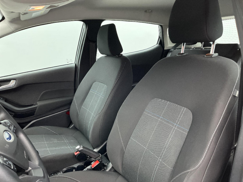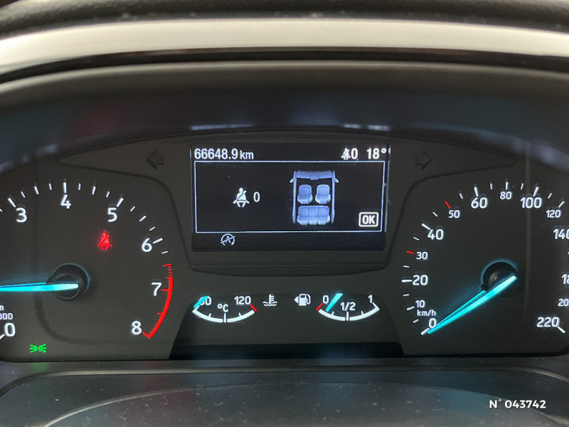 Tapis de sol AV / Aide au maintien dans la voie / Contour de grille de calandre chromé / Jantes acier 15" avec enjoliveurs et pneus 195/60 R15 / 3ème appui-tête AR / Sellerie tissu noir Intersection/Tira avec renforts latéraux View / Système MyKey (seconde clé programmable) / Kit de réparation des pneumatiques / Poignées de portes couleur carrosserie / Trappe Easy Fuel / FordPass Connect avec modem embarqué / Système audio Ford SYNC avec écran tactile 8", 2 ports USB, DAB, compatible AppLink, Apple CarPlay et Android auto / Phares AV avec réflecteurs LED / Sellerie tissu noir Intersection avec renforts latéraux View / Contour de grille de calandre faà§on chromé / Pare-chocs couleur carrosserie / Désactivation de l'airbag passager / Becquet AR couleur carrosserie