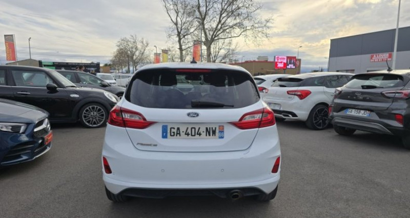 Ford Fiesta 1.0 EcoBoost 140 ch SetS BVM6 ST LINE X berline, blanc, 7 cv, 5 portes, première mise en circulation le 01/07/2020, garantie 12 mois. 5 places OPTIONS ET ÉQUIPEMENTS : Audio - Télécommunications : - Système audio SYNC 3 avec Navigation - GPS - système de navigation Conduite : - Indicateur de changement de vitesse - Système KeyFree (Ouverture et démarrage mains libres) - allumage automatique des feux - clé mains-libres - détecteur de pluie - limiteur de vitesse - pack visibilite - régulateur de vitesse Extérieur : - Aide au stationnement AR - Becquet AR couleur carrosserie - Jantes alliage 17 chromées avec pneus 205/45/R17 - jantes : alliage - jantes alliage - rétroviseurs électriques Intérieur : - Air conditionné automatique - Console centrale avec accoudoir et rangement intégré - Pommeau de levier de vitesses spécifique - Réglage en hauteur sur siège passager - Réglage lombaire du siège conducteur - Réglage lombaire sur sièges passager - Vitres AR électriques - soufflet de levier de vitesse et frein à main en cuir - Vitres arrières électriques - direction assistée - fermeture centralisée - ordinateur de bord - rétroviseur interieur electrochrome - siège conducteur réglable en hauteur - verrouillage à distance - vitres avant éléctriques - volant cuir Pack : - Alerte d'oubli de ceintures de sécurité AV et AR - Bouton de démarrage Ford Power - Ceintures de sécurité AV réglables en hauteur - My Key - Pare-chocs couleur carrosserie - Plancher de coffre ajustable - Poignées de portes extérieures couleur carrosserie - Tapis de sol AV et AR spécifiques - Volant - inclus éclairage d'ambiance intérieur - 5 ceintures de sécurité 3 points - Sieges arrières rabattable - appuis-tête arrière - détection des panneaux routiers - nombre de rapports : 6 vitesses - siège passager réglable - tapis de sol Sécurité : - Alerte de franchissement involontaire de ligne - Pack Assistance 1R - latéraux (thorax) et rideaux - Aide au demarrage en pente - Assistant maintien dans la voie - ESP - airbag coté passager - airbags frontaux - contrôle pression des pneus - fixations ISOFIX - kit de dépannage pneumatique - phares antibrouillard Autres équipements et informations : - 2 avec EcoMode - Alerte vigilance du conducteur - Badges Vignale sur les ailes AV - Calandre Vignale spécifique avec détails chromés - Environnement noir - FordPass Connect avec modem embarqué - Plaques de seuil de portes AV avec logo Vignale - Sellerie Cuir/Tissu étendue à la planche de bord - Sellerie tissu noir Ruby Ontario/Airfield avec renforts latéraux en cuir Windsor/Vinyl - Système audio Ford SYNC 3 avec Navigation - Trappe à carburant EasyFuel - info trafic TMC et points d'intérêts Michelin - Classe Crit'air : 1 - Puissance kilowatt : 103 kw - feux de circulation diurne - kilométrage garanti - puissance réelle : 140 ch - émission CO2 : 109 g/km Référence annonce : 118VO010721