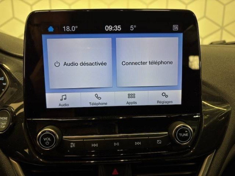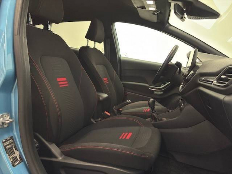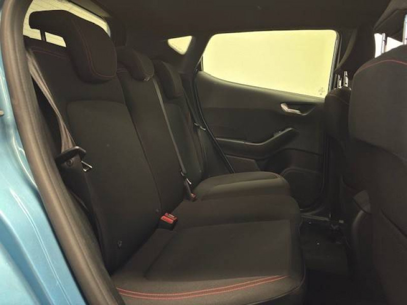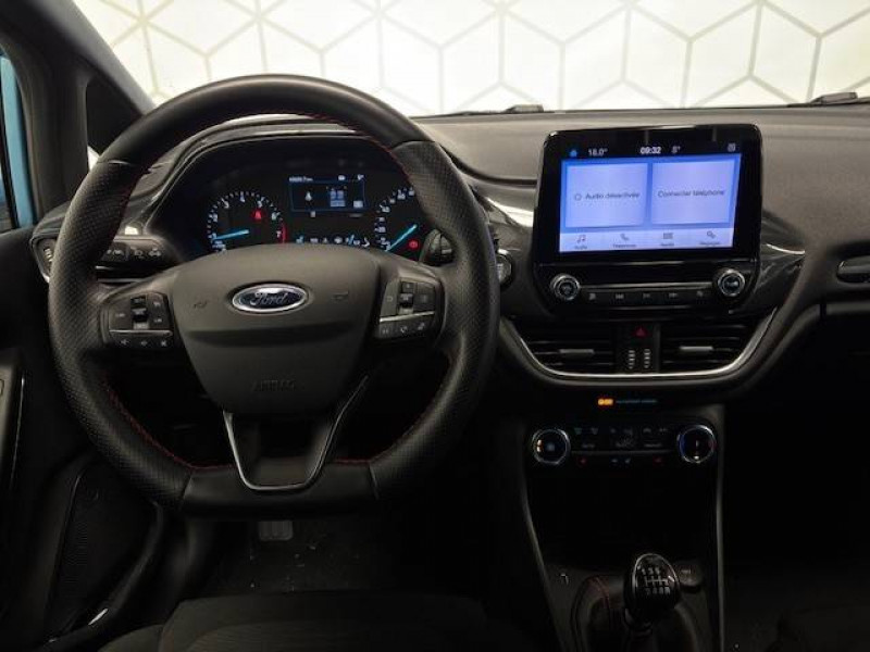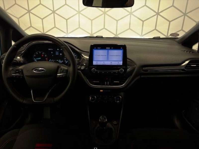 3ème appui-tête AR / Aide au maintien dans la voie / Alerte de baisse de vigilance du conducteur / Badge spécifique ST-Line sur les ailes AV / Becquet AR couleur carrosserie / Bouton de démarrage "Ford Power" / Ciel de toit noir / Console centrale avec accoudoir / Désactivation de l'airbag passager / Entourage des vitres noires / Grille de calandre ST-Line / Jantes alliage 17" Rock Metallic avec pneus 205/45 R17 / Kit carrosserie / Kit de réparation des pneumatiques / Phares et feux de route à LED / Poignées de portes couleur carrosserie / Sellerie Tissu Noir Eton avec renforts latéraux Eton et surpiqûres rouges / Siège conducteur à réglage manuel 4 positions / Siège passager à réglage manuel 2 positions / Sortie d'echappement chromée / Suspension Sport / Système audio Ford SYNC avec écran tactile 8", 2 ports USB, DAB, compatible AppLink, Apple CarPlay et Android auto / Système MyKey (seconde clé programmable) / Tapis de sol AV avec surpiqures rouges / Trappe Easy Fuel / Volant en cuir à méplat avec surpiqûres rouges