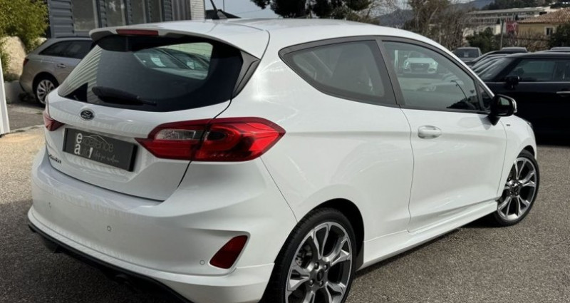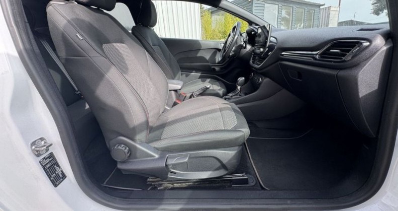 Ford FIESTA 1.0 ECOBOOST 100CH STOP&START ST-LINE BVA 3P, (Berline), BLANC, 5cv, 3 portes, mise en circulation le 16-11-2017. 5 places, longueur : 4,04 mètres, boîte de vitesse : automatique OPTIONS ET EQUIPEMENTS : Audio - Télécommunications - Commandes vocales - Ecran tactile - Interface Media - Kit mains-libres Bluetooth - Prise USB - Radio - Services connectés Conduite - Aide au démarrage en côte - Arrêt et redémarrage auto. du moteur - Démarrage sans clé - Limiteur de vitesse - Suspensions Sport Extérieur - Becquet arrière - Boucliers AV et AR couleur caisse - Eclairage au sol - Eclairage statique d'intersection - Feux de jour - Jantes Alu - Phares halogènes - Poignées ton carrosserie - Radar de stationnement AR - Rétroviseurs dégivrants - Rétroviseurs rabattables électriquement - Rétroviseurs électriques - Sortie d'échappement chromée Intérieur - Banquette 60/40 - Banquette AR rabattable - Banquette arrière 3 places - Clim manuelle - Filtre à Pollen - Fixations Isofix aux places arrières - Frein à main en cuir - Ordinateur de bord - Pédalier sport - Siège conducteur avec réglage lombaire - Sièges avant sport - Verrouillage centralisé des portes - Verrouillage centralisé à distance - Vitres avant électriques - Volant cuir - Volant sport Sécurité - ABS - AFIL - Airbag conducteur - Airbag passager - Airbag passager déconnectable - Airbags latéraux avant - Airbags rideaux - Assistance de maintien de trajectoire - Ceintures avant ajustables en hauteur - Détecteur de sous-gonflage - ESP - Phares antibrouillard - Témoin de perte de pression pneumatique Autres équipements et informations : - Tissu Noir Court/View Kilométrage garanti. Référence annonce : 11091