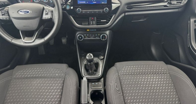 Cylindrée : 999 cm3 EQUIPEMENTS Rétroviseur intérieur électrochrome, Verrouillage centralisé à distance, Air conditionné automatique, Allumage automatique des feux, Pare/chocs couleur carrosserie, Régulateur de vitesse, Console centrale avec accoudoir, Lèche/vitres chromés, Eclairage d'ambiance intérieur, Ordinateur de bord couleur 4.2, Désactivation de l'airbag passager, Direction assistée électrique, Limiteur de vitesse, Reconnaissance des panneaux de signalisation, Vitres AV et AR électriques, Système de surveillance de la pression des pneus, Alerte de franchissement involontaire de ligne, Becquet AR couleur carrosserie, ESP, Allumage automatique des essuie/glaces, Airbags frontaux latéraux (thorax) et rideaux, Levier de frein à main en cuir, Recharge de téléphone par induction, Alerte de baisse de vigilance du conducteur, Siège conducteur avec réglage du soutien lombaire, Siège passager avec réglage du soutien lombaire, Poignées de portes couleur carrosserie, Système KeyFree avec ouverture et démarrage sans clé, Alerte de ceinture de sécurité AV/AR, FordPass Connect avec modem embarqué, Feux de route intelligents / Commutation automatique des feux de route aux feux de croisement, Banquette rabattable / 60/40, Feux de jour à LED et feux AR à LED, Système audio Ford SYNC avec Navigaion B&O écran tactile 8 2 ports USB DAB compatible AppLink Apple CarPlay et Android auto, Rétroviseurs rabattables électriquement avec éclairage d'approche, Rétroviseurs extérieurs couleur carrosserie réglables électriquement et chauffants, Sièges AV réglables en hauteur, Trappe Easy Fuel, Grille de calandre avec barres horizontales et contour façon chrome, Phares antibrouillard AV avec fonction éclairage des angles, Siège AV réglables en hauteur, Système KeyFree / d'entrée et de démarrage mains libres, Phares AV avec projecteurs LED sur feux de croisements, Levier de vitesse en cuir, Jantes alliage 15 8 branches avec pneus 195/60/R15, Aide au démarrage en côte, 2 Fixations ISOFIX aux places AR, Peinture métallisée Gris Lunaire, Sellerie tissu noir Vibrant avec renforts latéraux Eton, 3ème appui/tête AR, Aide au stationnement AR, 5 ceintures de sécurité 3 points, Aide au maintien dans la voie, Vitres AR surteintées, Roue de secours 14'',