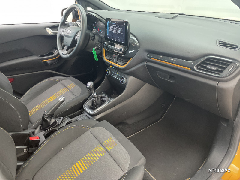 Ford SYNC 3 avec écran tactile 6,5", 2 ports USB, commande vocale, compatible Applink, Apple CarPlay et Android Auto / Rétroviseur intérieur électrochrome / Aide au maintien dans la voie / Badge Active sur les ailes AV / Becquet AR couleur carrosserie / Désactivation de l'airbag passager / Environnement noir / Feux antibrouillard AV avec fonction éclairage d'angle / Garde a sol sur-élevée / Indicateur de changement de vitesse / Jantes alliage 17" 5 branches biton noir/alu et pneus 205/45 R17 / Kit carrosserie spécifique Active / Kit de réparation des pneumatiques / Levier de frein à main en cuir / Pavillon de toit noir / Poignées de portes couleur carrosserie / Rétroviseurs électriques rabattables chauffants avec éclairage d'approche / Rétroviseurs extérieurs couleur carrosserie / Sellerie tissu noir Jean Road avec renforts latéraux Outlook / Seuils de portes Active / Sièges AV Sport - Sellerie tissu avec surpiqures orange / Suspensions renforcées / Système d'alerte vigilance du conducteur / Système MyKey (seconde clé programmable) / Tapis de sol AV et AR / Trappe à carburant EasyFuel / Volant gainé cuir 3 branches / 3 modes de conduite sélectionnables (Normal, Eco et Antidérapage) / 3 modes de conduite sélectionnables (Normal, Eco et Faible adhérence) / 3ème appui-tête AR / Réglage lombaire du siège conducteur
