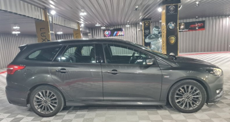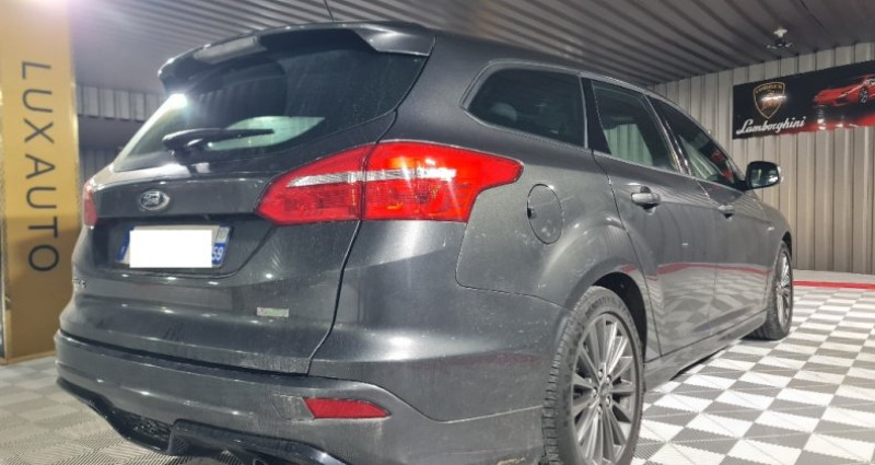 Cylindrée : 1498 cm3 Nb. Vitesse : 6 - 3 appuis-tête AR - ABS avec répartiteur électronique de freinage EBD - Accoudoir central - Affichage de la température extérieure - Aide au démarrage en côte - Airbags frontaux conducteur et passager - Airbags latéraux - Airbags rideaux - Audio SYNC APPLINK avec Bluetooth, commandes vocales, prises USB et AUX, écran couleur 4.2' et 6HP - Banquette AR rabattable 60/40 - Bouton de démarrage 'Ford Power' - Cache-bagages - Ceintures de sécurité 3 points à enrouleur sur tous les sièges - Ciel de toit noir - Climatisation à réglage manuel - Console centrale avec 2 porte-gobelets et prise 12V - Contrôle dynamique de la trajectoire (ESP) - Contrôle vectoriel de couple TVC - Crochets d'arrimage dans le coffre - Direction assistée électrique - Entourage des vitres noires - Feux AR à LED - Feux de jour à LED - Feux de jour à LED avec feux AR à LED - Feux stop clignotants lors d'un freinage d'urgence - Fixations ISOFIX aux places latérales sur la banquette AR - Grille de calandre noire - Jantes alliage 17' spécifiques ST-Line - Kit Carrosserie - Kit de réparation pneumatique - Ordinateur de bord - Pare-soleil conducteur avec miroir de courtoisie - Pédalier façon Aluminium - Pédalier Sport - Poches aumonières au dos des sièges AV - Poignées de portes extérieures couleur carrosserie - Pommeau de levier de vitesse ST-Line gainé cuir - Projecteurs antibrouillard - Régulateur et limiteur de vitesse - Rétroviseurs extérieurs électriques et chauffants couleur carrosserie - Seuils de portes AV avec logo ST-Line - Siège conducteur réglable en hauteur - Sièges AV Sport avec renforts latéraux - Suspension Sport - Système de surveillance de la pression des pneus (DDS) - Système Stop