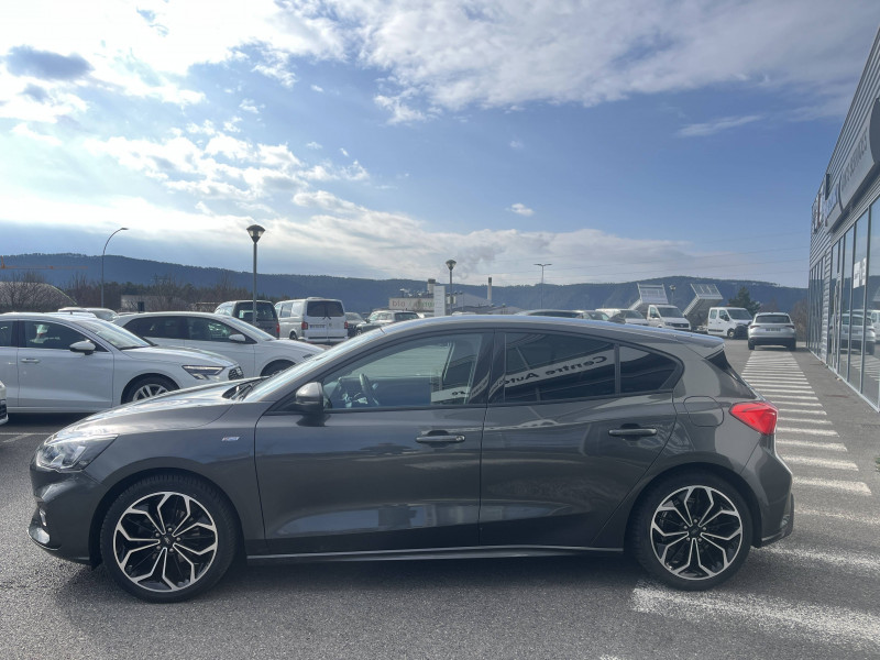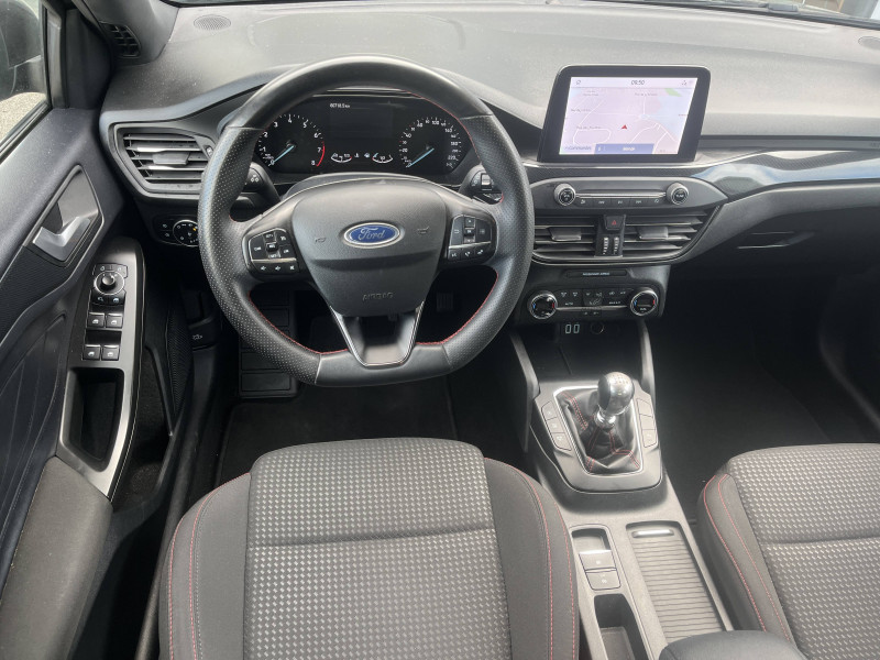 Aide au maintien dans la voie / Essuie-glaces automatiques et rétroviseur intérieur électrochromique / Feux antibrouillard à LED avec éclairage d'angles / Freinage automatique post-collision / Jantes alliage 17" ST-Line - 5x2 branches / Lampes de lecture LED AV/AR / Phares AV avec réflecteurs LED / Système multimédia Ford SYNC 3 avec navigation, commandes vocales, DAB, écran tactile 8" / 3 Modes de conduite sélectionnables : Eco, Normal et Sport / 3ème appui-tête AR / Badges latéraux ST-Line / Becquet AR couleur carrosserie / Ciel de toit noir / Console centrale avec porte-gobelets et accoudoir / Double sortie d'échappement sport / Entourage des feux noir / Ford KeyFree - accès et démarrage sans clé / FordPass Connect - Modem embarqué - Abonnement gratuit pendant 10 ans / Grille de calandre noire ST-Line / Joncs de vitres latérales noirs / Kit Carrosserie ST-Line / Kit de réparation / MyKey Génération 2 / Pare-chocs AV/AR couleur carrosserie / Poignées de portes AV/AR couleur carrosserie / Pommeau de levier de vitesse exclusifs ST-Line / Suspension Sport / Système de prévention de collision avec détection de piétons et cyclistes / Tapis de sol AV / Volant à méplat