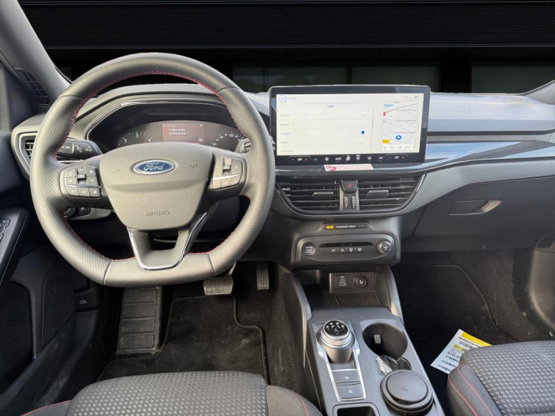 via lécran tactile) / Double sortie déchappement sport / Feux antibrouillard à led avec éclairage dangles / Ford keyfree - accès et démarrage sans clé / Freinage automatique post-collision / Grille de calandre noire st-line / Joncs de vitres latérales noirs / Kit carrosserie st-line / Kit de réparation / Lampes de lecture led av/ar / Mykey génération 2 / Pare-chocs ar couleur carrosserie / Pare-chocs av couleur carrosserie / Phares à réflecteur à led / Sellerie tissu spécifique st-line avec surpiqûres rouges / Siège passager réglable en hauteur avec réglages lombaire / Suspension sport / Volant st-3 branches en sensico, base plate avec surpiqûres rouges