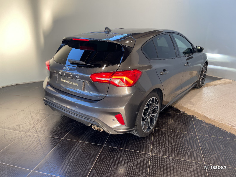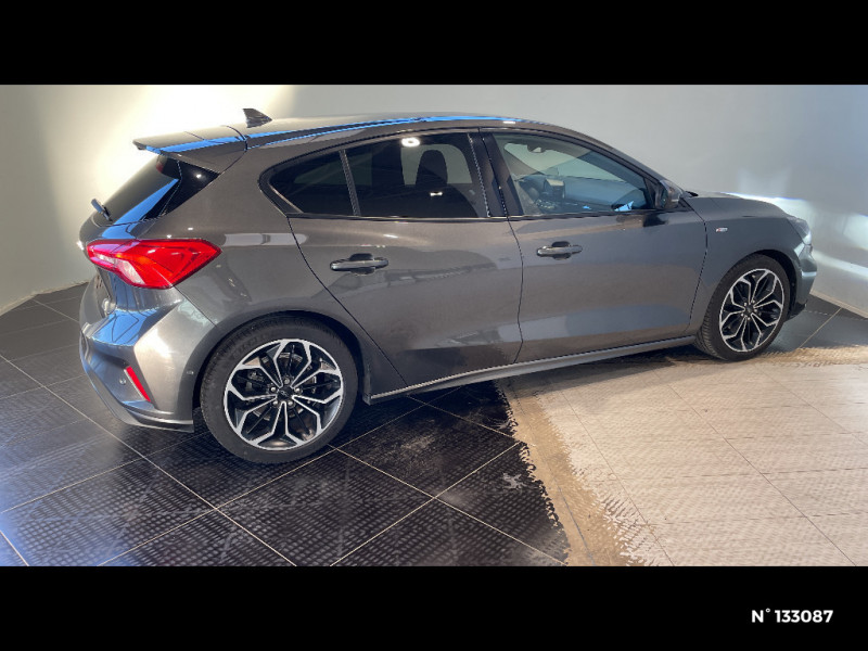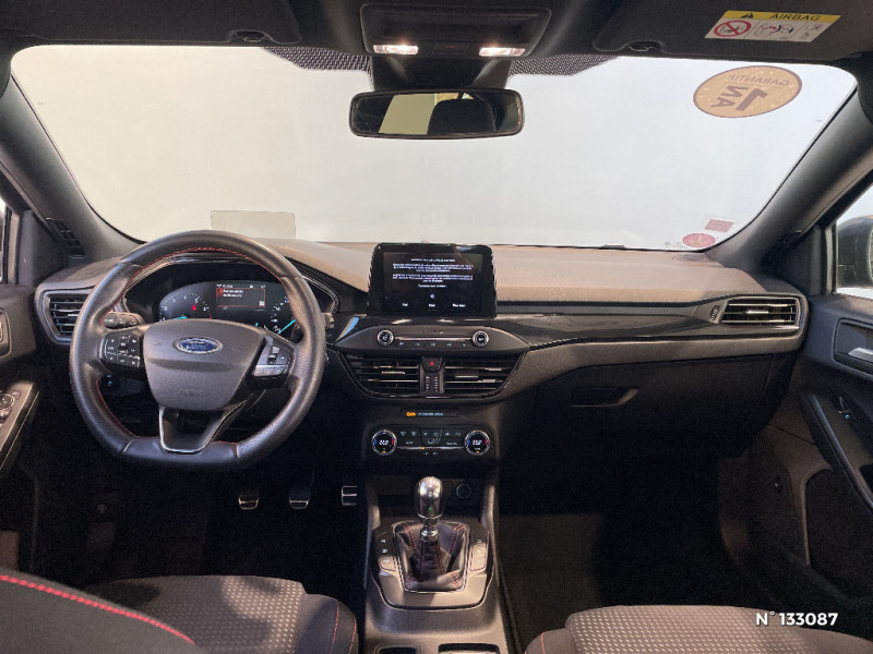 Badges latéraux ST-Line / 3ème appui-tête AR / Aide au maintien dans la voie / Console centrale avec porte-gobelets / Double sortie d'échappement sport / Entourage des feux noir / Feux antibrouillard avec éclairage d'angles / FordPass Connect / FordPass Connect - Modem embarqué, détail des fonctionnalités disponibles dans l'onglet "FordPass connect" - Abonnement gratuit pendant 2 ans / Freinage automatique post-collision / Inserts exclusifs ST-Line / Jantes alliage 17" ST-Line - 5x2 branches / Joncs de vitres latérales noirs / Kit Carrosserie ST-Line / Lampes de lecture LED AV/AR / Lumière d'ambiance à LED / Modes de conduite sélectionnables / MyKey Génération 2 / Pare-chocs AV/AR couleur carrosserie / Pédalier Aluminium / Plaques de seuil de portes avec logo ST-Line / Poignées de portes AV/AR couleur carrosserie / Pommeau de levier de vitesse exclusifs ST-Line / Sellerie Tissu spécifique ST-Line avec surpiqûres rouges / Suspension Sport / Système de prévention de collision avec détection de piétons et cyclistes / Système multimédia Ford SYNC 2.5 avec Android Auto/Apple Car play / Tapis de sol AV et AR exclusifs ST-Line / Volant cuir à mé-plat exclusif ST-Line / 3 Modes de conduite sélectionnables : Eco, Normal et Sport / Becquet AV/AR couleur carrosserie