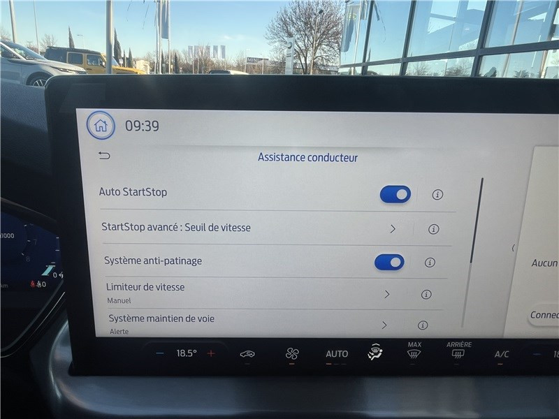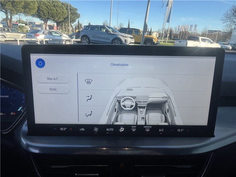 2 ports USB à l'AR (type A et type C) / 3ème appui-tête AR / 3 Modes de conduite sélectionnables : Eco, Normal et Sport / Aide au maintien dans la voie / Assistant d'urgence (via téléphone connecté) / Banquette AR rabattable 60/40 avec trappe à ski / Becquet couleur carrosserie / Ciel de toit gris / Combiné d'instrumentalisation numérique 12.3" / Console centrale avec porte-gobelets et accoudoir / Contrôle de la température entièrement automatique A/C (actionné via l'écran tactile) / Feux antibrouillard avec éclairage d'angles / Ford KeyFree - accès et démarrage sans clé / FordPass Connect - Modem embarqué - Abonnement gratuit pendant 10 ans / Freinage automatique post-collision / Grille de calandre Titanium chromée / Jantes acier 16" - 10 branches (Argent/Noir) / Jantes acier 16" - 10 branches (Argent/Noir) / Joncs de vitres latérales chromés / Kit de réparation / Lampes de lecture LED AV/AR / Lumière d'ambiance à LED / MyKey Génération 2 / Navigation Connectée (1 an offert) / Pare-chocs AR couleur carrosserie / Pare-chocs AV couleur carrosserie / Pare-soleil conducteur et passager avec lumière / Phares à LED et feux AR à LED / Pommeau de levier de vitesse cuir / Rétroviseurs ex.chauffants, réglables et rabattables électriquement couleurs carrosserie / Sellerie Tissu Titanium / Système de prévention de collision avec détection de piétons et cyclistes / Système multimédia Ford SYNC 4 avec navigation, commande vocale, assistant Alexa, DAB / Tapis de sol AV et AR / Volant 3 branches Sensico