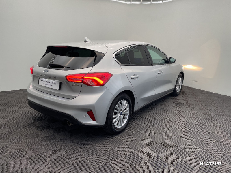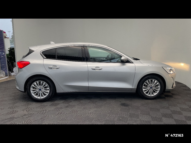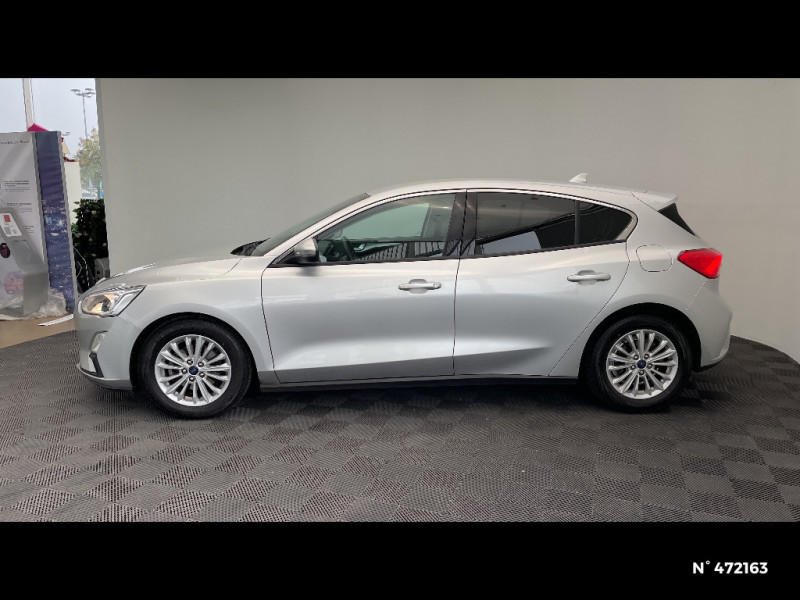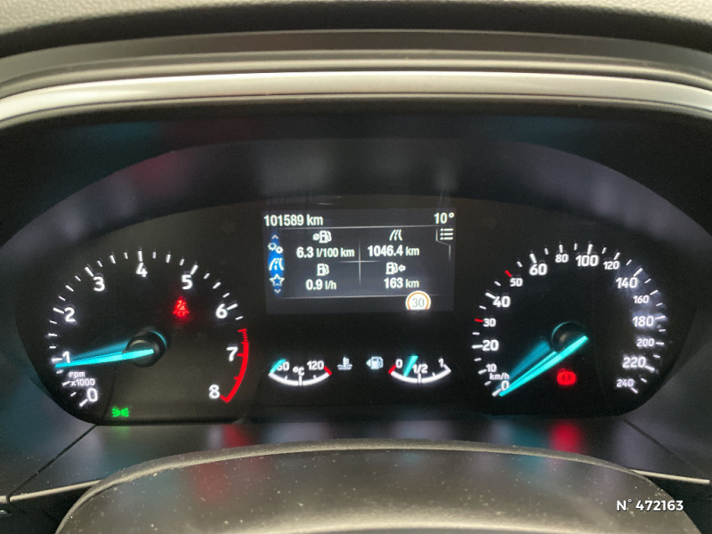 Poignées de portes AV/AR couleur carrosserie / Sellerie Tissu Titanium / Siège conducteur et passager réglable en hauteur avec réglage lombaire / Système de prévention de collision avec détection de piétons et cyclistes / Système multimédia Ford SYNC 2.5 avec Android Auto/Apple Car play / Tapis de sol AV et AR / Volant et pommeau de levier de vitesses gainés cuir / 3 Modes de conduite sélectionnables : Eco, Normal et Sport / 3ème appui-tête AR / Plaques de seuil de portes avec logo Ford / Aide au maintien dans la voie / Becquet AV/AR couleur carrosserie / Console centrale avec porte-gobelets / Entourage des feux façon aluminium / Essuie-glaces automatiques et rétroviseur intérieur électrochromique / Feux antibrouillard avec éclairage d'angles / Ford KeyFree - accès et démarrage sans clé / Ford KeyFree - accès et démarrage sans clé / FordPass Connect / FordPass Connect - Modem embarqué, détail des fonctionnalités disponibles dans l'onglet "FordPass connect" - Abonnement gratuit pendant 2 ans / Freinage automatique post-collision / Grille de calandre Titanium / Inserts Titanium / Jantes alliage 16" Titanium - 15 branches / Joncs de vitres latérales chromés / Lampes de lecture LED AV/AR / Lumière d'ambiance à LED / Modes de conduite sélectionnables / MyKey Génération 2 / Pare-chocs AV/AR couleur carrosserie