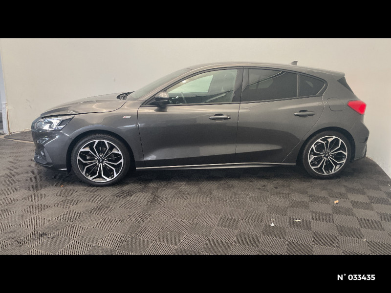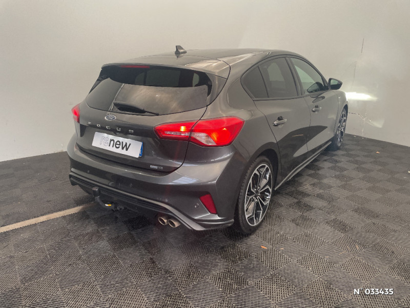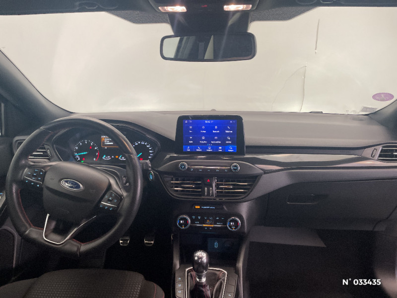 3ème appui-tête AR / Entourage des feux noir / Kit Carrosserie ST-Line / Essuie-glaces automatiques et rétroviseur intérieur électrochromique / Lampes de lecture LED AV/AR / Poignées de portes AV/AR couleur carrosserie / Becquet AV/AR couleur carrosserie / Freinage automatique post-collision / MyKey Génération 2 / Système de prévention de collision avec détection de piétons et cyclistes / Feux antibrouillard avec éclairage d'angles / Pommeau de levier de vitesse exclusifs ST-Line / Tapis de sol AV et AR exclusifs ST-Line / Volant cuir à mé-plat exclusif ST-Line / Sellerie Tissu spécifique ST-Line avec surpiqures rouges / Badges latéraux ST-Line / Double sortie d'échappement sport / Jantes alliage 17" ST-Line - 5x2 branches / FordPass Connect - Modem embarqué, détail des fonctionnalités disponibles dans l'onglet "FordPass connect" - Abonnement gratuit pendant 2 ans / Joncs de vitres latérales noirs / 3 Modes de conduite sélectionnables : Eco, Normal et Sport / Phares AV avec réflecteurs LED / Système multimédia Ford SYNC 3 avec navigation, commandes vocales, DAB, écran tactile 8" / Kit de réparation / Grille de calandre noire ST-Line / FordPass Connect - Modem embarqué - Abonnement gratuit pendant 10 ans / Volant à méplat / Pédalier Aluminium / Système multimédia Ford SYNC 2.5 avec Android Auto/Apple Car play / Ford KeyFree - accès et démarrage sans clé / Inserts exclusifs ST-Line / Plaques de seuil de portes avec logo ST-Line / Pare-chocs AV/AR couleur carrosserie / Console centrale avec porte-gobelets / Lumière d'ambiance à LED / Suspension Sport / Tapis de sol AV / Aide au maintien dans la voie / Ciel de toit noir