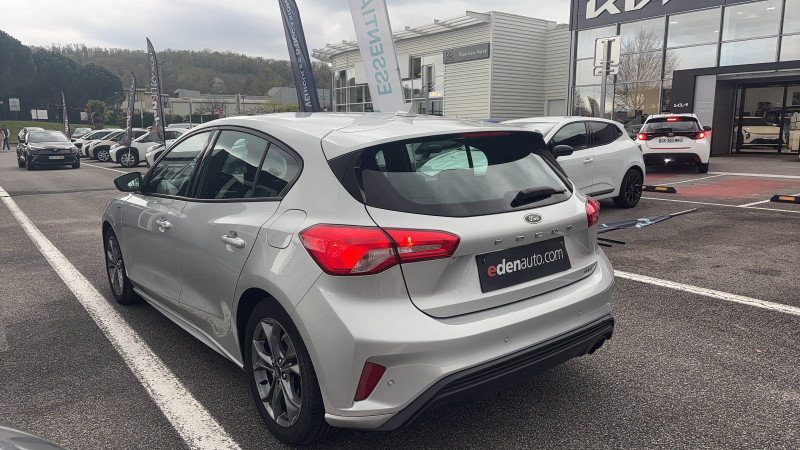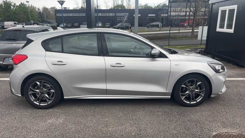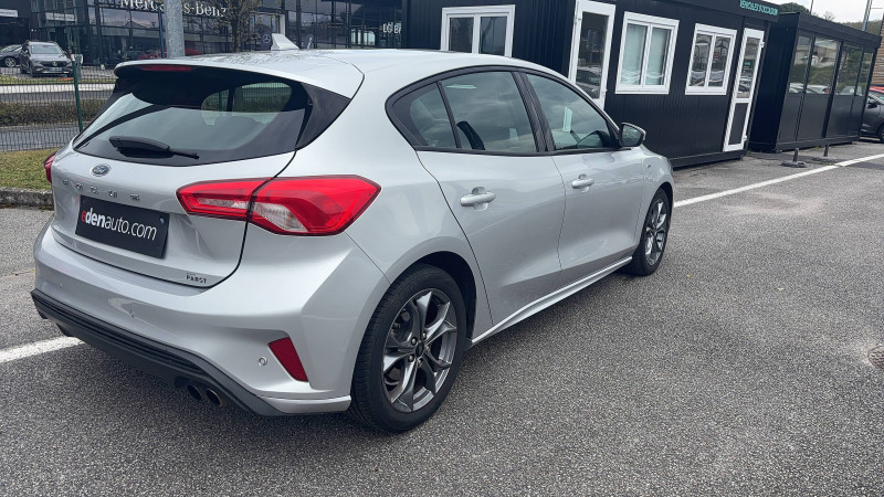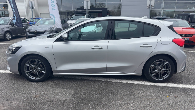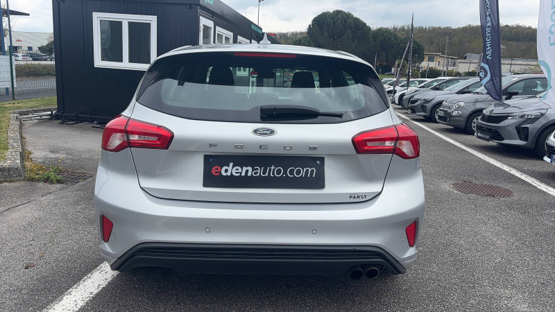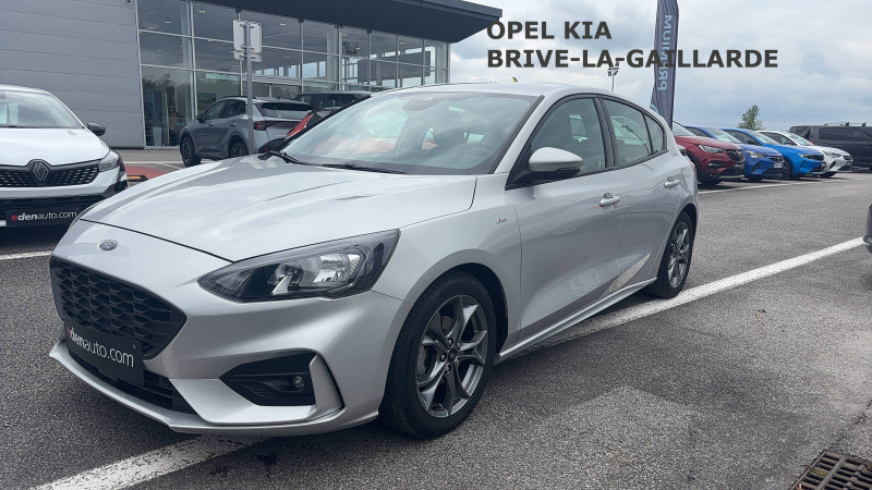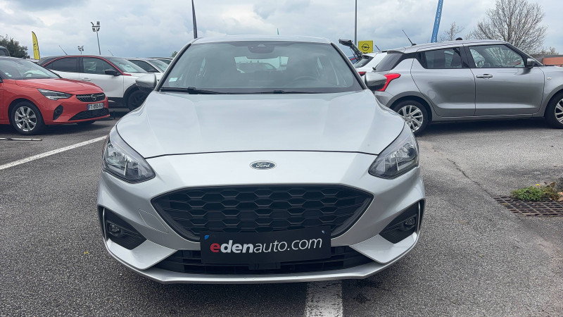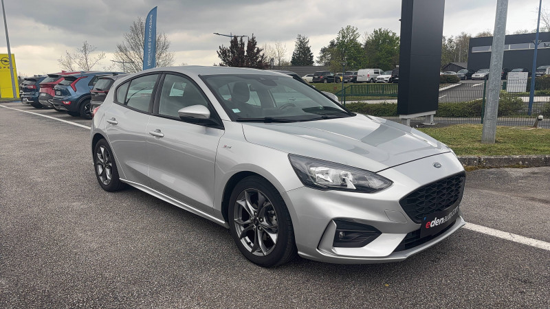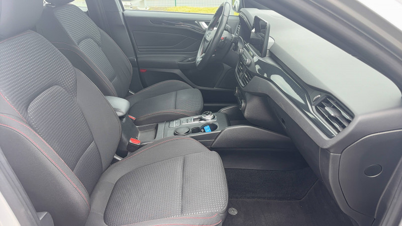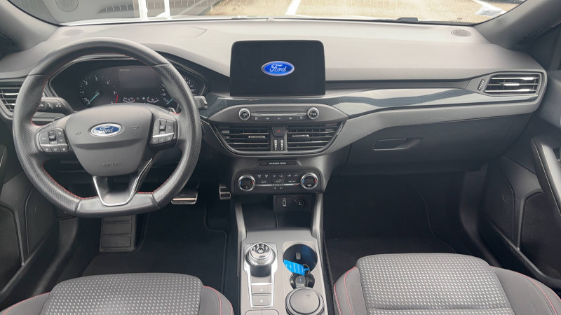 3ème appui-tête AR / 3 Modes de conduite sélectionnables : Eco, Normal et Sport / Aide au maintien dans la voie / Badges latéraux ST-Line / Becquet AR couleur carrosserie / Ciel de toit noir / Console centrale avec porte-gobelets et accoudoir / Double sortie d'échappement sport / Entourage des feux noir / E-Shifter - Sélecteur de vitesse rotatif / Essuie-glaces automatiques et rétroviseur intérieur électrochromique / Feux antibrouillard à LED avec éclairage d'angles / Ford KeyFree - accès et démarrage sans clé / FordPass Connect - Modem embarqué - Abonnement gratuit pendant 10 ans / Freinage automatique post-collision / Grille de calandre noire ST-Line / Jantes alliage 17" ST-Line - 5x2 branches / Joncs de vitres latérales noirs / Kit Carrosserie ST-Line / Kit de réparation / Lampes de lecture LED AV/AR / MyKey Génération 2 / Pack Aide à la conduite / Pack Sécurité / Pare-chocs AV/AR couleur carrosserie / Phares AV avec réflecteurs LED / Poignées de portes AV/AR couleur carrosserie / Rétroviseurs ex.chauffants, réglables et rabattables électriquement couleurs carrosserie avec éclairage d'approche / Sellerie Tissu spécifique ST-Line avec surpiqûres rouges / Suspension Sport / Système de prévention de collision avec détection de piétons et cyclistes / Système multimédia Ford SYNC 3 avec navigation, commandes vocales, DAB, écran tactile 8" / Tapis de sol AV / Volant à méplat