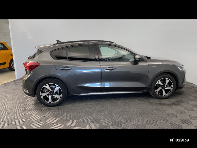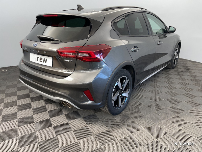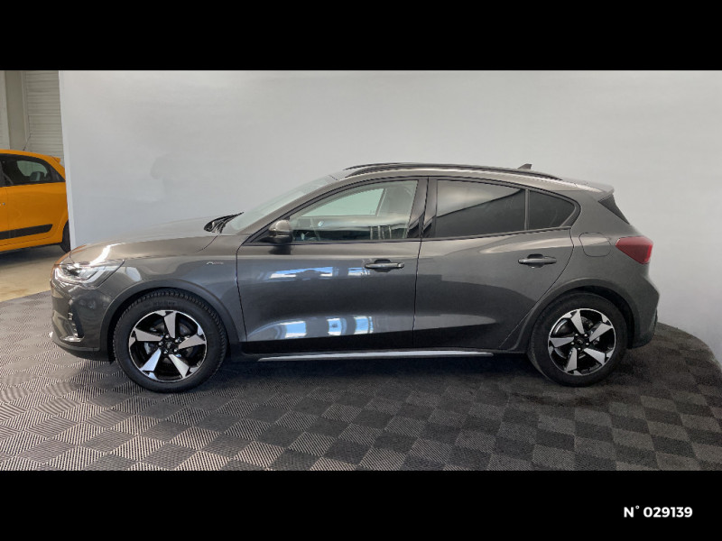 Jantes alliage 17" Active - 5 branches / Pare-chocs AR couleur carrosserie / Pare-soleil conducteur et passager avec lumière / Tapis de sol AV et AR en velours avec surpiqures bleues / Suspension Active (hauteur de caisse augmentée de 30 mm) / Banquette AR rabattable 60/40 avec trappe à ski / Assistant d'urgence (via téléphone connecté) / 2 ports USB à l'AR (type A et type C) / Système multimédia Ford SYNC 4 avec navigation, commande vocale, assistant Alexa, DAB et écran tactile 13" / FordPass Connect - Modem embarqué - Abonnement gratuit pendant 10 ans / Phares à LED et feux AR à LED / Console centrale avec porte-gobelets et accoudoir / Pare-chocs AV couleur carrosserie / Lumière d'ambiance / Feux antibrouillard à LED avec éclairage d'angles / Rétroviseurs ex.chauffants, réglables et rabattables électriquement couleurs carrosserie avec éclairage d'approche / Sellerie Tissu Noir Nunatek avec renforts latéraux Eton et surpiqures bleues / Navigation Connectée (1 an offert) / Contrôle de la température entièrement automatique A/C (actionné via l'écran tactile) / Aide au maintien dans la voie / Eclairage d'ambiance à LED / 3ème appui-tête AR / Lampes de lecture LED AV/AR / Freinage automatique post-collision / MyKey Génération 2 / Système de prévention de collision avec détection de piétons et cyclistes / Ford KeyFree - accès et démarrage sans clé / Double sortie d'échappement / Arches de roues noires / Joncs de vitres latérales noirs / 5 modes de conduite sélectionnables : Eco, Normal, Sport, Trail et Faible adhérence / Volant 3 branches Sensico / Combiné d'instrumentalisation numérique 12.3" / Ciel de toit gris / Kit de réparation / Grille de calandre noire Active