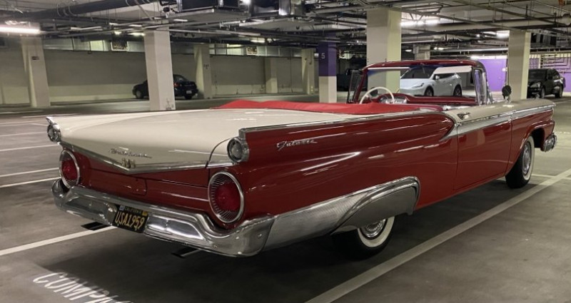 Cet automobile, datant de 1959, est un Ford Galaxie Sunliner équipé d'un moteur V8 de 332 cubic inches et d'une transmission automatique Fordomatic à deux vitesses. Il a été modifié avec des freins à disques avant à assistance électrique. Le cable de fermeture du capot a été remplacé par le vendeur. Les balais de verre fonctionnent bien, mais le câble doit être relié. Un nouveau batterie a été installé. Le Sunliner peut être conduit n'importe où. La voiture a été restaurée à San Jose en Californie et l'habitacle et le toit convertible sont en très bon état. Elle est équipée de pneus radiaux en bon état. Toutes les lumières fonctionnent comme prévu, ainsi que tous les indicateurs, la radio et le chauffage. Le toit en tissu fonctionne comme neuf. Les dépôts sont non remboursables.. Ce descriptif est basé sur les éléments communiqués par le propriétaire avec un traitement assisté. Merci pour votre indulgence en cas de formulation perfectible. Provenance : California. Disponibilité : 7 semaines, clés en main. 34 500 € tout compris (importation, taxes, procédure d'immatriculation). Annonce publiée le 06/11/2025