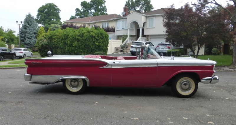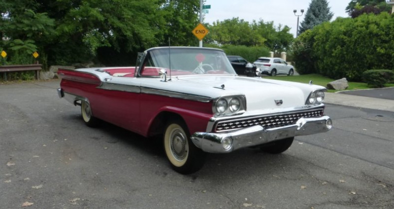 Le 1959 Ford Fairlane 500 Galaxie Skyliner est un véhicule de collection entièrement restauré. De couleur rouge avec des bandes blanches, il a été décapoté et son intérieur a été réaménagé dans son design original avec des matériaux authentiques. La carrosserie, le châssis, la mécanique et le système freinage ont tous été remis à neuf. La voiture est en très bon état général et est prête à être montrée ou ajoutée à une collection. Toutefois, il est important de noter que toutes les ventes sont finales en raison de l'âge et de la rareté de ce modèle. Les détails supplémentaires sont disponibles sur notre site internet, y compris une vidéo de visite guidée. Nous sommes des concessionnaires de voitures de collection basés à New York, aux États-Unis. Nous invitons les clients à venir nous visiter à Merit Cars.. Ce descriptif est basé sur les éléments communiqués par le propriétaire avec un traitement assisté. Merci pour votre indulgence en cas de formulation perfectible. Provenance : New York. Disponibilité : 7 semaines, clés en main. 49 500 € tout compris (importation, taxes, procédure d'immatriculation). Annonce publiée le 10/11/2025