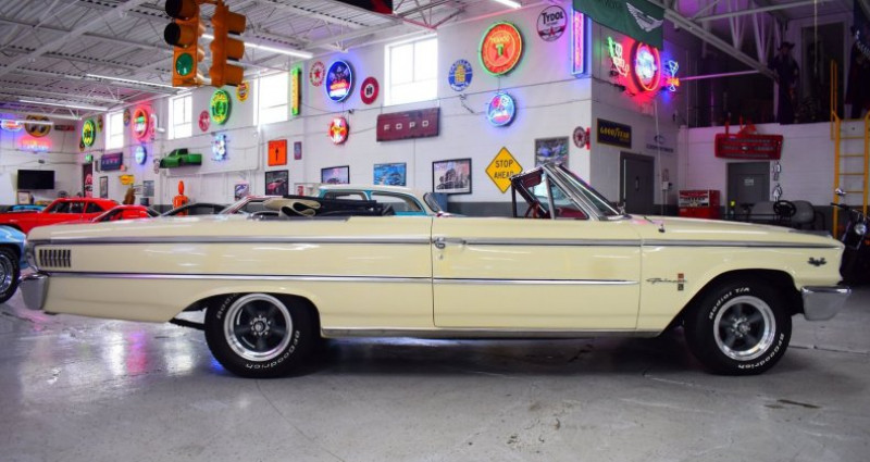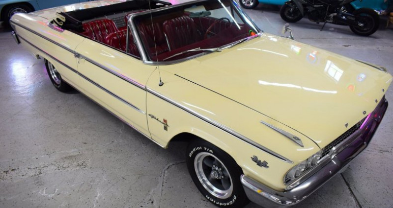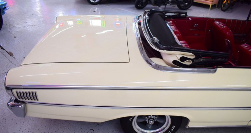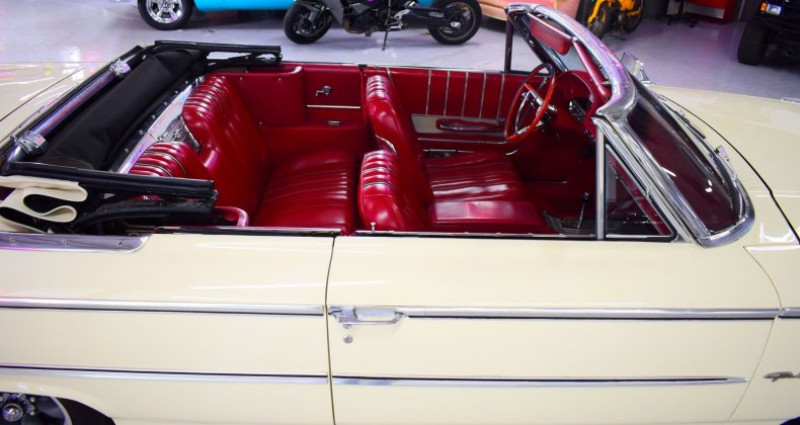 - Année : 1963 - Couleur : Eggshell White - Toit : convertible blanc - Roues : American Racing Torque Thrust-style - Pneus : BFGoodrich - Moteur : 390ci V8 - Boîte de vitesses : automatique - Équipement : direction et freins assistés, chauffage - Intérieur : sièges de sport rouge en cuir, console centrale et palette de vitesses au sol - État : bon état de conduite, entièrement original, entièrement restauré il y a environ 20 ans, entretien régulier. Provenance : Michigan. Disponibilité : environ 7 semaines, clés en main. 44 500 € tout compris (importation, taxes, procédure d'immatriculation). Annonce publiée le 10/12/2025