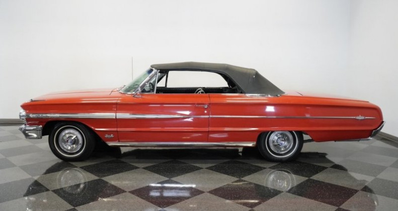 - Marque : Ford - Modèle : Galaxie 500XL - Année : 1964 - Type de carrosserie : Cabriolet - Couleur extérieure : Rouge Rangoon - Couleur intérieure : Noir - Moteur : V8 390 ci (Z-code) - Boîte de vitesses : 3 vitesses automatique (Ford-O-Matic) - Direction assistée - Freinage assisté - Échappement à double échappement avec échappement à verre - Siège avant en cuir - Console centrale - Jantes XL - Kilométrage : 47 888 miles (environ 76 990 km) - Numéro de châssis original : 4J69Z158358. Provenance : Arizona. Disponibilité : environ 7 semaines, clés en main. 40 500 € tout compris (importation, taxes, procédure d'immatriculation). Annonce publiée le 13/12/2025