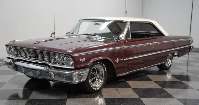 - Marque : Ford - Modèle : Galaxie 500 - Année : 1963 - Carrosserie : Fastback - Couleur extérieure : Heritage Burgundy - Couleur intérieure : Noir - Moteur : 390 cubic-inch V8 - Boîte de vitesses : 4 vitesses manuelle - Transmission : RWD - Kilométrage : 36 172 (croyant) - Jantes : Magnum 500 de 15 pouces - Suspension : Style original - Roues : 215/65R-15 BFGoodrich - Autoradio : Custom Autosound AM/FM/AUX avec Bluetooth - Options : Climatisation, volant à assistance de direction, panneau de bord original, feu arrière double sortie, toit sport Corinthian White, capot moteur original, documents d'origine et facture de construction originale. Provenance : Georgia. Disponibilité : environ 7 semaines, clés en main. 43 500 € tout compris (importation, taxes, procédure d'immatriculation). Annonce publiée le 13/12/2025