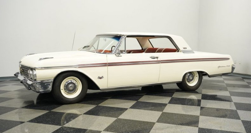 - Année : 1962 - Modèle : Ford Galaxie 500 Club Victoria Tri-Power - Moteur : 390 V8, redressé à 428 cm³ - Boîte de vitesses : Manuelle à 4 vitesses - Arbre de transmission arrière : Ford 9 avec 3.50 gears - Freins : Disques avant, tambours arrière - Suspension : Style original, avant et arrière - Jantes : 15 style original - Pneus : P225/70R15 avant, 28X10.50-15LT arrière - Intérieur : Cuir vinyle, siège redessiné, radio AM, chauffage et dégivrage fonctionnels, intérieur propre avec peu de usure. Provenance : , USA. Disponibilité : environ 7 semaines, clés en main. 38 000 € tout compris (import, taxes, procédure d'immatriculation). Annonce publiée le 13/12/2025