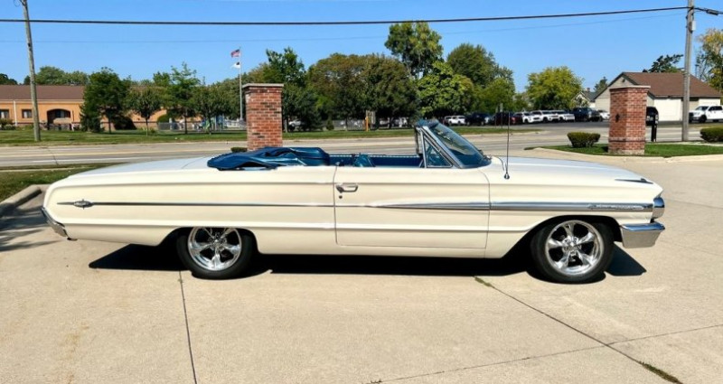 - Marque : Ford - Modèle : Galaxie XL500 - Année : 1964 - Numéro d'inventaire : 59412 - Couleur extérieure : Blanche - Couleur intérieure : Bleue - Type de carrosserie : Cabriolet - Moteur : 352 V8 - Boîte de vitesses : 3 vitesses automatique - Kilométrage : 50, 000 - Toit convertible motorisé avec coffre et fenêtre arrière en verre - Freinage et direction assistées - Siège de console avec sièges en cuir - Peinture de carrosserie récente avec peinture originale dans les jambes de porte - Mat de coffre et roue de secours dans le coffre - Pneus et roues neuves - Échappement double neuf avec tuyaux en aluminium - Couvertures de sièges et tapis de sol en bon état. Provenance : Michigan. Disponibilité : environ 7 semaines, clés en main. 42 500 € tout compris (importation, taxes, procédure d'immatriculation). Annonce publiée le 26/12/2025