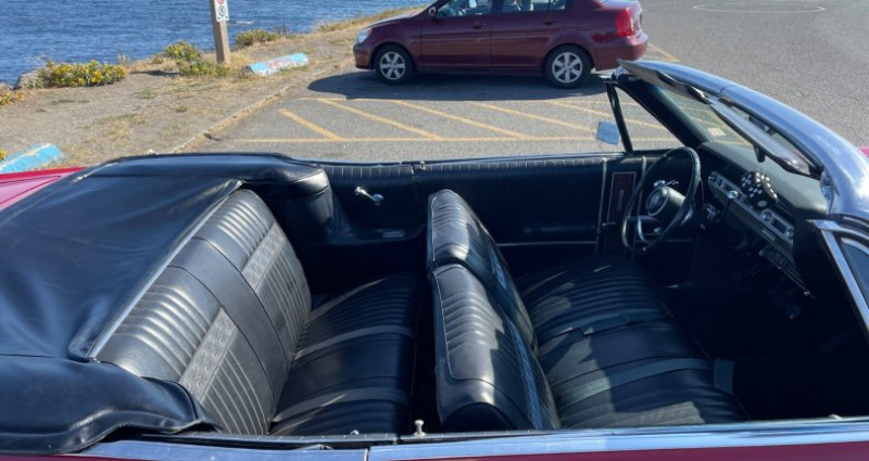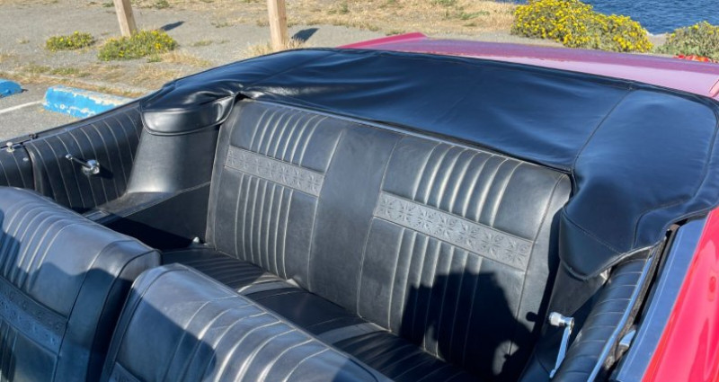 - Couleur : Candy Apple Red - Intérieur : Finition en vinyle noir - Type de carrosserie : 2 portes cabriolet - Moteur : 8 cylindres 289 (2V) - Boîte de vitesses : C-4 Automatique - Essieu : 2.80:1 - Peinture et carrosserie : Très bonne, quelques petits travaux à effectuer - Toit : Presque neuf avec assistance électrique - Intérieur : Siège rénovés, radio radio factory - Odomètre : Approximativement 120 000 miles, boîte de vitesses solide, bonne accélération. Provenance : British Columbia. Disponibilité : environ 7 semaines, clés en main. 27 500 € tout compris (importation, taxes, procédure d'immatriculation). Annonce publiée le 09/08/2023