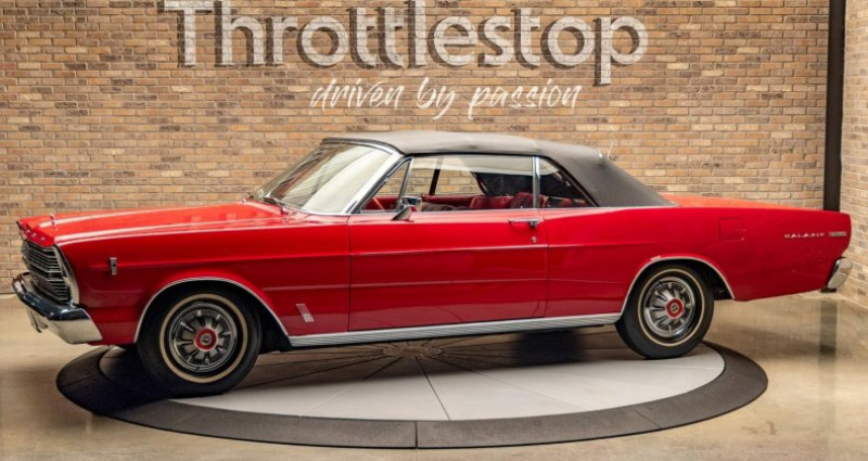 - Marque : Ford - Modèle : Galaxie 500 - Année : 1966 - Stock : 813769 - Moteur : 390 V8 - Boîte de vitesses : Inconnu - Kilométrage : 4 131 - VIN : 6G65Y111728 - Couleur extérieure : Rouge Candyapple (T) - Couleur intérieure : Rouge - Carrosserie : 76A convertible - État général : Très propre, quasi neuf - Travaux : Alarme discrète de type période - Top : Convertible très propre - Axe arrière : 3.00:1 - État de fonctionnement : Démarre facilement, court circuit - Emplacement : Elkhart Lake, Wisconsin, États-Unis. Provenance : Wisconsin. Disponibilité : environ 7 semaines, clés en main. 71 500 € tout compris (importation, taxes, procédure d'immatriculation). Annonce publiée le 30/12/2025