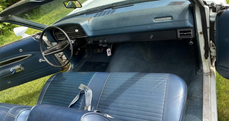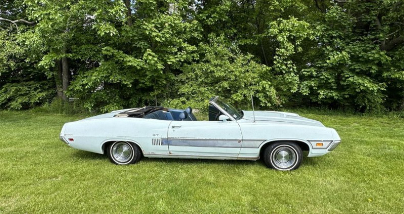Cet automobile de collection est un Ford Torino GT Convertible de 1970, équipé d'un moteur de 302 chevaux, doté de boîte automatique, de freins à disque, d'un toit ouvrant électrique, de sièges bancs et d'un intérieur bleu. La carrosserie originale ainsi que le carburateur, l'alternateur et les panneaux de carrosserie sont intacts. Cette voiture est accompagnée de la plupart des documents d'entretien de son propriétaire initial. Les originales sont de plus en plus rares et leur valeur continue à augmenter. C'est un excellent investissement. La voiture a parcouru 102 000 miles avec son moteur original, seul le pompe à eau a été remplacé. Le toit est en parfait état et la carrosserie présente quelques points de rouille sur la zone des panneaux de carrosserie latéraux. Il a également été remis en peinture une seule fois et une borne de changement de signal d'avertissement a été remplacée. Toutes les photographies sont exactes.. Provenance : Massachusetts, USA. Disponibilité : 7 semaines, clés en main. 21 500 € tout compris (import, taxes, procédure d'immatriculation). Annonce publiée le 27/09/2025