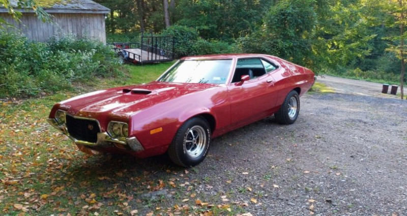 1972 Gran Torino Fastback, 351w 4 bolt main block, 427 stroker kit, estimated 500 HP, C4 reverse manual transmission with TCI 4500 stall convertor, 9 inch rear housing with 3.70 gear posi unit, custom dual exhaust, restored trim, bumpers, weather seals, interior, suspension, brakes (drums rear, disc front, power booster, new e brake, cables, lines), brand new steering box, heavy duty solid 1.1/8 inch solid sway bar (front), sway bar (rear), front suspension with new poly bushings, all new wiring, restoration completed in 2016 (motor and drivetrain in 2022), new front windshield, original ac (needs compressor and plumbing), from Charlotte South Carolina, title from there, sold as is with no warranty, body taken down to bare metal, motor built by F&R body shop and fabrication, complete sandblast, prime and repaint of frame, extra parts included with car.. Provenance : New York. Disponibilité : environ 7 semaines, clés en main. 53 000 € tout compris (importation, taxes, procédure d'immatriculation). Annonce publiée le 29/11/2025