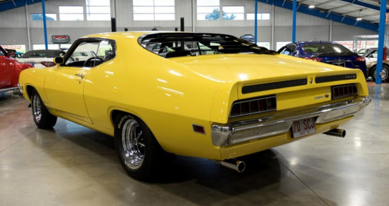 - Marque : Ford - Modèle : Torino - Année : 1970 - Type : Muscle car américain - Numéro d'inventaire : C128831 - Numéro de VIN : OA38J128831 - Couleur extérieure : Jaune - Couleur intérieure : Noir - Transmission : Automatique - Moteur : 429cid/375hp 4bbl - MPG : Non spécifié - Trains motrices : RWD. Provenance : Ohio. Disponibilité : environ 7 semaines, clés en main. 81 000 € tout compris (importation, taxes, procédure d'immatriculation). Annonce publiée le 31/12/2025