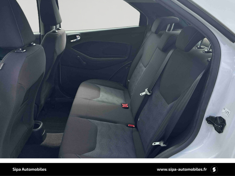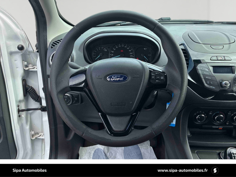 Contrôle dynamique de stabilité (ESP) avec aide au freinage d'urgence et aide au démarrage en côte / Jantes acier 15" avec enjoliveurs / 3ème appui-tête AR / Alerte de dégonflage des pneumatiques / Ceintures 3 points à l'AR / Déconnection de l'airbag passager AV / Eclairage du coffre / Essuie-glace AV avec intermittence réglable / Grille de calandre avec barres et contour chromés / Indicateur de changement de vitesse / Kit de réparation pneumatique / Ordinateur de bord 2.3" avec EcoMode / Pare-chocs couleur carrosserie / Pare-soleil conducteur et passager AV avec miroirs de courtoisie / Poches aumonières au dos des sièges AV / Poignées de portes extérieures couleur carrosserie / Pré-équipement audio / Rétroviseurs extérieurs couleur carrosserie / Siège conducteur réglable 4 directions (AV/AR et en hauteur manuellement) / Siège passager réglable 2 directions (AV/AR) / Sécurité enfant sur les portes AR / Tapis de sol AV / Trappe à carburant avec système Ford EasyFuel / Témoin d'oubli des ceintures de sécurité AV / Verrouillage centraliséà distance avec 1 clé principale pliante et une 2ème clé fixe