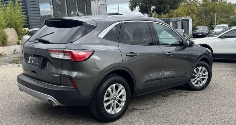 Ford KUGA 2.5 DURATEC 190CH FHEV E85 TITANIUM BVA, (S.U.V.), GRIS F, 8cv, 5 portes, mise en circulation le 30-11-2022.  5 places, longueur : 4,61 mètres, boîte de vitesse : automatique  OPTIONS ET EQUIPEMENTS : Audio - Télécommunications - 6 Haut parleurs - Commandes vocales - Ecran tactile - GPS Cartographique - Interface Media - Kit mains-libres Bluetooth - Prise USB - Prise auxiliaire de connexion audio - Radio numérique DAB - TMC  Conduite - Aide au démarrage en côte - Capteur de luminosité - Capteur de pluie - Démarrage sans clé - Limiteur de vitesse - Mode de conduite - Régulateur de vitesse - Système d'accès sans clé  Extérieur - Barres de toit - Becquet arrière - Boucliers AV et AR couleur caisse - Caméra de recul - Echappement à double sortie - Feux de freinage d'urgence - Feux de jour à LED - Jantes Alu - Phares halogènes - Poignées ton carrosserie - Radar de stationnement AR - Radar de stationnement AV - Répétiteurs de clignotant dans rétro ext - Rétroviseurs dégivrants - Rétroviseurs rabattables électriquement - Rétroviseurs électriques  Intérieur - Accoudoir central AV avec rangement - Bacs de portes avant - Banquette 60/40 - Banquette AR rabattable - Banquette arrière 3 places - Banquette coulissante - Boite à gants fermée - Clim automatique bi-zones - Compte tours - Eclairage d'ambiance - Ecran multifonction couleur - Filtre à Pollen - Fixations Isofix aux places arrières - Lampe de coffre - Lampes de lecture à l'arrière - Lampes de lecture à l'avant - Ordinateur de bord - Ouverture des vitres séquentielle - Plancher de coffre mobile - Porte-gobelets avant - Prise 12V - Rétroviseur intérieur électrochrome - Siège conducteur avec réglage lombaire - Siège conducteur réglable en hauteur - Siège passager avec réglage lombaire - Siège passager réglable en hauteur - Sièges avant sport - Tablette cache bagages - Verrouillage centralisé des portes - Verrouillage centralisé à distance - Vitres arrière électriques - Vitres avant électriques - Volant cuir - Volant cuir multifonction - Volant réglable en profondeur et hauteur  Sécurité - ABS - AFIL - Aide au freinage d'urgence - Airbag conducteur - Airbag passager - Airbag passager déconnectable - Airbags latéraux avant - Airbags rideaux AV et AR - Antidémarrage électronique - Antipatinage - Ceintures avant ajustables en hauteur - Contrôle élect. de la pression des pneus - EBD - ESP - Phares antibrouillard - Préparation Isofix - Système avancé de détection d'obstacles - Système de prévention des collisions - Troisième ceinture de sécurité - Témoin de bouclage des ceintures AV  Autres équipements et informations : - Bleu Abysse  Kilométrage garanti.  Référence annonce : 10751