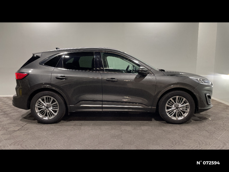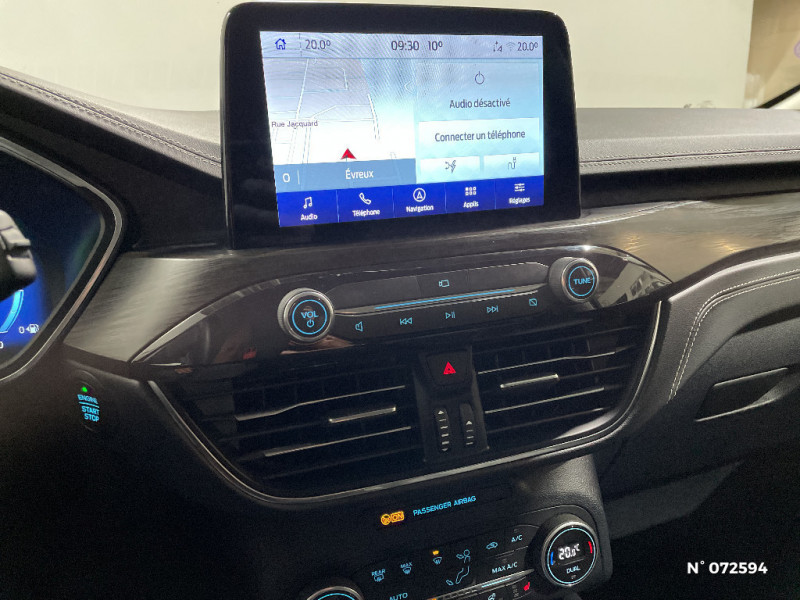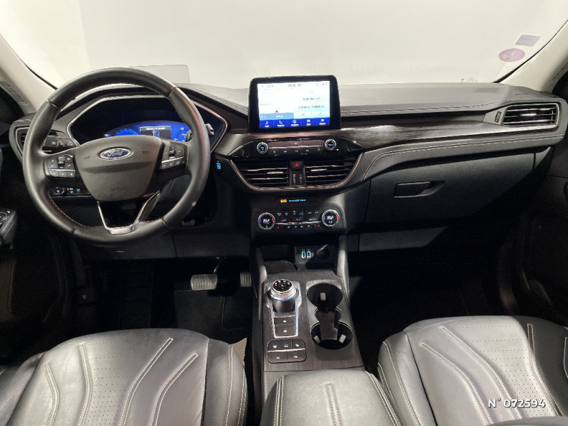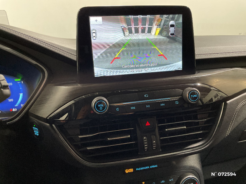 Système de navigation Europe et points d'intérêts Michelin et ZFE / Bouton de démarrage "Ford Power" / Caméra AR 180° / Combiné d'instrumentalisation numérique 12.3" avec Ecomode / Console centrale avec accoudoir avec 2 prises USB / Contours de vitres noirs / Correcteur électronique de trajectoire (ESP) avec optimisation du freinage électronique / Désactivation de l'airbag passager / Déverrouillage électrique du hayon / Eclairage compartiment coffre / Disques de frein AR / Double sortie d'échappement / Eclairage d'ambiance intérieur / Environnement noir / FordPass Connect avec modem embarqué 4 et fonction eCall / Frein de stationnement électrique / Grille de calandre Titanium / Jantes alliage 17" 10 branches finition Titanium avec pneus 225/65 R17 / Kit de réparation des pneumatiques / Pare-chocs couleur carrosserie / Plancher de coffre ajustable / Plaques de seuil de portes AV / Prise 12V dans le coffre / Rétroviseur intérieur électrochrome / Rétroviseurs extérieurs couleur carrosserie électriques, chauffants et rabattables avec éclairage d'approche / Sécurité enfant (verrouillage manuel des portes AR) / Sellerie tissu noir Ray avec renforts latéraux Eton / Siège conducteur réglable en hauteur avec soutien lombaire (8 positions) / Siège passager réglable en hauteur avec soutien lombaire (8 positions) / Banquette AR coulissante rabattable (60/40) / Barres de toit couleur aluminium / Barres de toit en aluminium / Becquet AR couleur carrosserie / Becquet couleur carrosserie / Système audio bi-tuner AM/FM Ford SYNC3, avec écran tactile 8", DAB, commandes vocales, 2 ports USB, compatible AppLink, Apple CarPlay et Android auto, 6 HP / Système KeyFree avec ouverture et démarrage sans clé / Système MyKey (seconde clé programmable) / Tapis de sol AV et AR / Trappe Easy Fuel / Volant 3 branches Sensico / 2 câbles de recharge pour une utilisation domestique et publique / 3ème appui-tête AR / 4 Modes d'alimentation sélectionnables (auto, now, later, charge) / Système d'avertissement acoustique (AVAS - Alerte sonore pour piétons) / Système de navigation Europe et points d'intérêts Michelin