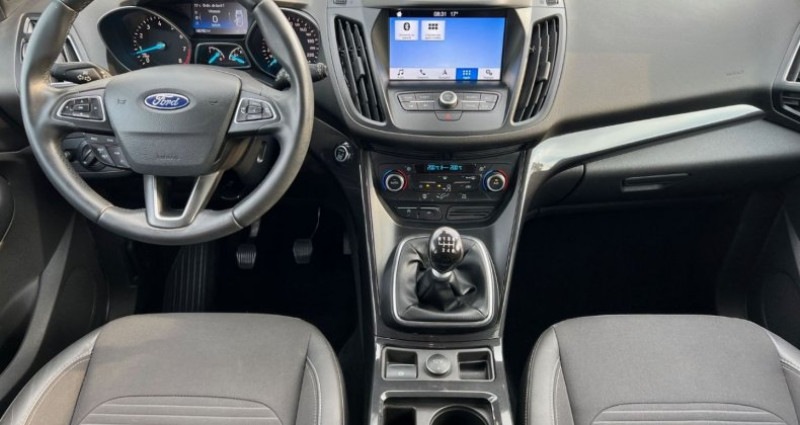 Cylindrée : 1496 cm3 EQUIPEMENTS Allumage automatique des feux, Double sortie d'échappement, Régulateur de vitesse, Système de navigation Europe et points d'intérêts Michelin, Combiné d'instrumentation TFT couleur 4.2 avec Ecomode, Aide au stationnement AV/AR, Phares antibrouillard AV, 5 ceintures de sécurité 3 points, Allumage automatique des essuie/glaces, 3ème appui/tête AR, Feux de jour AV et AR à LED, Grille de calandre Titanium, Air conditionné automatique bizone, Aide au maintien dans la voie avec avertisseur de franchissement de ligne, Système KeyFree avec ouverture et démarrage sans clé, Airbags frontaux latéraux (thorax) et rideaux, Frein de stationnement électrique, Rétroviseur intérieur électrochrome, Verrouillage centralisé à distance, Bouton de démarrage Ford Power, Aide au démarrage en côte, Désactivation de l'airbag passager, Vitres AV et AR électriques, 2 Fixations ISOFIX aux places AR, Système de surveillance de la pression des pneus, Becquet AR couleur carrosserie, Volant 3 branches Sensico, Rétroviseurs extérieurs couleur carrosserie électriques chauffants rabattables avec fonction BLIS (surveillance des angles morts avec alerte de véhicule en approche), Banquette AR coulissante rabattable (60/40), Console centrale avec accoudoir avec 2 prises USB, FordPass Connect avec modem embarqué 4 et fonction eCall, Ouverture du hayon à distance, Attelage, Correcteur électronique de trajectoire (ESP), Limiteur de vitesse intelligent (affichage instantané des limitations de vitesse sur le tableau de bord), 5 Modes de conduite sélectionnables (normal eco sport faible adhérence trail), Siège conducteur réglable en hauteur avec soutien lombaire (8 positions), Siège passager réglable en hauteur avec soutien lombaire (8 positions), Sellerie tissu noir Ray avec renforts latéraux Eton, Levier de vitesse Sensico finition noir brillant, Jantes alliage 17 10 branches finition Titanium avec pneus 225/65 R17, Vitres AR surteintées, Peinture métallisée Fashion Gris Magnetic, Hayon mains libres,