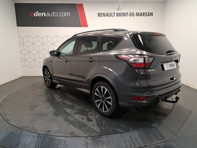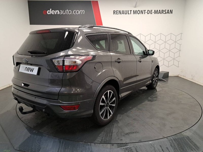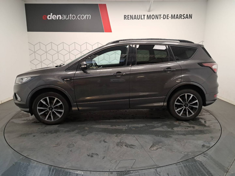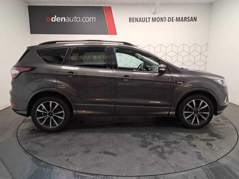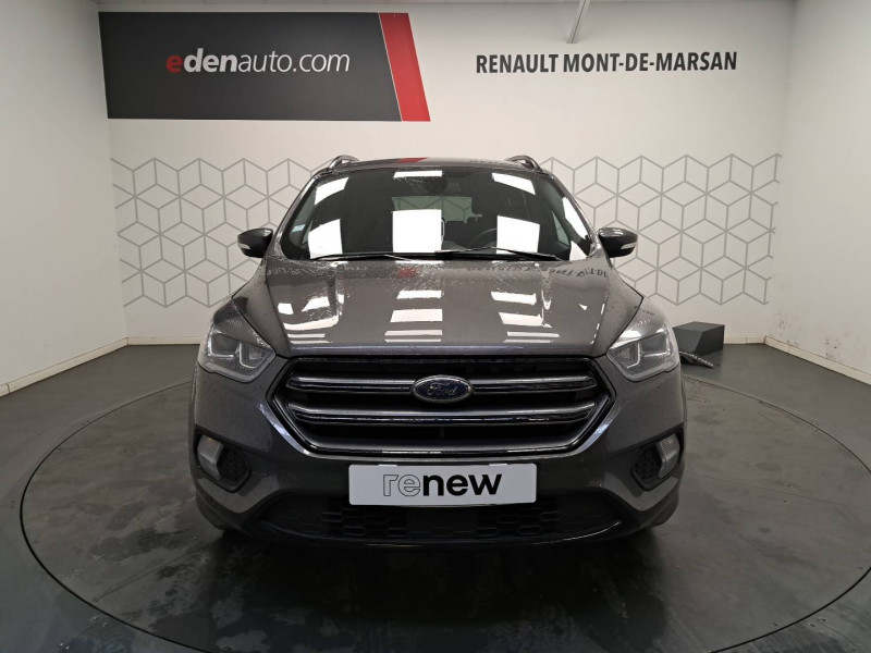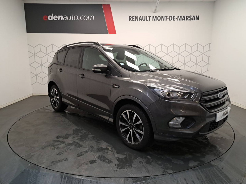 Active Park Assist (Inclus aide au stationnement AV et AR) / Airbags rideaux 1ère et 2ème rangées / Alerte d'oubli de ceintures de sécurité AV et AR / Appuie-tête aux 5 places / Banquette AR réglable en inclinaison et rabattable 60/40 d'une main / Boîte à gants avec éclairage / Boucliers AV et AR couleur carrosserie / Cache-bagages flexible / Ceintures de sécurité 3 points aux 5 places / Ceintures de sécurité AV réglables en hauteur avec prétensionneurs et limiteurs d'effort / Clignotement automatique des feux de stop en cas de freinage d'urgence / Console centrale avec accoudoir et double espace de rangement / Double sortie d'échappement / Easy Fuel (Trappe sans bouchon avec détrompeur de carburant) / Eclairage du coffre / Entourage des phares antibrouillard brillant / Entourage des phares et des vitres noir / ESP avec Aide au freinage d'urgence et Contrôle de stabilité de la remorque / Etui à lunettes intégré au plafond / Frein à main électrique / Jantes alliage 18" bi-tons grises et noires ST-Line / Kit carrosserie complet / Kit de réparation pneumatique / Lève-vitres AV/AR électriques à impulsion avec fermeture globale à distance / Pack Automatismes / Pare-soleil conducteur et passager avec miroir de courtoisie éclairé / Pédalier Aluminium / Plaques de seuil de portes spécifiques ST-Line / Poches aumonières au dos des sièges AV / Poignées de portes extérieures et de hayon couleur carrosserie / Pommeau de levier de vitesse ST-Line gainé cuir / Réglage lombaire du siège conducteur / Réglage lombaire du siège passager / Rétroviseurs extérieurs électriques chauffants, rabattables électriquement, couleur carrosserie avec répétiteurs de clignotants / Sièges AV réglables en hauteur manuellement / Sièges AV Sport, garnissage Cuir/Tissu Rapton / Spots de lecture AV/AR / Suspension Sport / Système d'accès et de démarrage sans clé Ford Keyfree / Système multimédia Ford SYNC III avec navigation, Bluetooth, commandes vocales avancées, écran couleur 8", 2 prises USB, 6HP, info trafic TMC, accès aux points d'intérêts du guide Michelin, Apple Carplay et Android Auto / Système MyKey Génération 2 / Tapis de sol AV et AR avec surpiqures rouges ST-Line / Volant en Cuir à méplat avec surpiqûre ST-Line réglable en hauteur et en profondeur