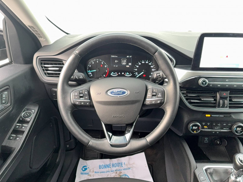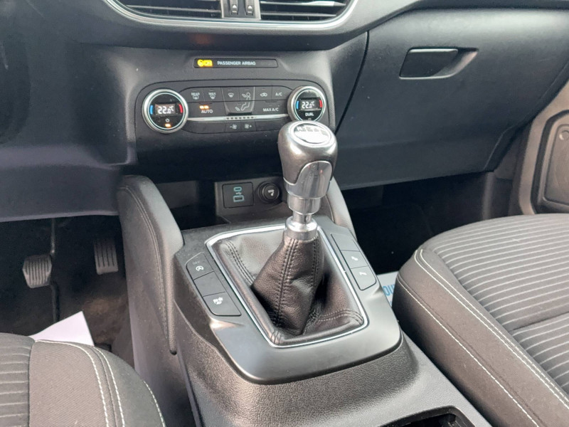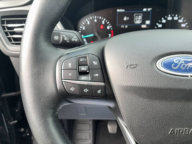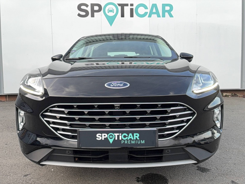 3ème appui-tête AR / 5 Modes de conduite sélectionnables (normal, eco, sport, faible adhérence, piste) / Banquette AR coulissante rabattable (60/40) / Barres de toit couleur aluminium / Becquet AR couleur carrosserie / Bouton de démarrage "Ford Power" / Console centrale avec accoudoir avec 2 prises USB / Contours de vitres noirs / Désactivation de l'airbag passager / Disques de frein AR / Double sortie d'échappement / Eclairage compartiment coffre / Eclairage d'ambiance intérieur / Environnement noir / FordPass Connect avec modem embarqué 4 et fonction eCall / Frein de stationnement électrique / Grille de calandre Titanium / Jantes alliage 17" 10 branches finition Titanium avec pneus 225/65 R17 / Kit de réparation des pneumatiques / Levier de vitesse Sensico finition noir brillant / Ouverture du hayon à distance / Pare-chocs couleur carrosserie / Phares halogènes avec projecteur LED sur feux de croisements / Plancher de coffre ajustable / Plaques de seuil de portes AV / Prise 12V dans le coffre / Rétroviseur intérieur électrochrome / Rétroviseurs extérieurs couleur carrosserie électriques, chauffants et rabattables avec éclairage d'approche / Sécurité enfant avec verrouillage électrique des portes AR / Sellerie tissu noir Ray avec renforts latéraux Eton / Siège conducteur réglable en hauteur avec soutien lombaire (8 positions) / Siège passager réglable en hauteur avec soutien lombaire (8 positions) / Système audio bi-tuner AM/FM Ford SYNC3, avec écran tactile 8", commandes vocales, 2 ports USB, compatible AppLink, Apple CarPlay et Android auto, 6 HP / Système de navigation Europe et points d'intérêts Michelin / Système KeyFree avec ouverture et démarrage sans clé / Système MyKey (seconde clé programmable) / Tapis de sol AV et AR / Trappe Easy Fuel / Volant 3 branches Sensico