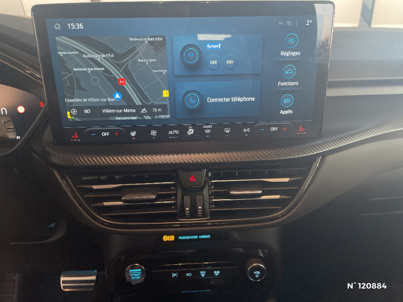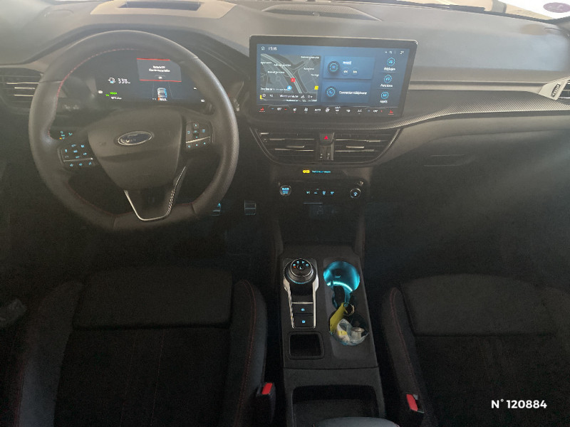 Feux de route intelligents (commutation automatique des feux de route/croisements) / Combiné d'instrumentalisation numérique avancée 12.3" avec Ecomode / Contours de vitres noirs / Volant à méplat 3 branches Sensico ST-Line avec surpiqûres rouges / Badge ST-Line / Pare-soleil conducteur / Pack Assistance - Régulateur adaptatif Intelligent 2.0 avec assistant de maintien et centrage dans la voie, fonction stop & go et lecture avancée des panneaux de signalisation - Surveillance des angles morts avec alerte de véhicule en approche - Camera 360° - Assistant pré-collision avec assistant de pré collision aux intersections - Assistant au freinage d'urgence en marche AR - Protection de bord de porte / Phares Full LED avec feux de jour à LED / Phares AV avec fonction Follow me home / Coques de rétroviseurs peints couleur carrosserie / Double sortie d'échapement avec canules d'échappement polies / Bouclier AV Sport / Bouclier AR sport / Panneaux inférieurs de protection de porte couleur carrosserie / Hayon mains libres / Tapis de sol avec logo ST Line / Banquette AR ajustable et rabattable 60/40 / Siège conducteur à réglage électrique sur 12 voies certifié AGR / Siège passager à réglage électrique sur 12 voies certifié AGR / Applications décoratives spécifiques ST-Line / Vitrage AV acoustique / Pack mémoire pour siège conducteur et rétroviseurs extérieurs / Modem 5G / eCALL (bouton d'appel d'urgence) / Bouclier AV avec inserts argentés / E-Shifter - Sélecteur de vitesse rotatif / Plaques de seuil de porte ST-Line / Grille AV finition ST-Line / Grille de bas de bouclier noire / Prise 12V dans le coffre / 2 ports USB à l'AR (type C) / Pédalier Aluminium / SYNC 4 avec écran 13,2'', système audio B&O 10 HP avec radio DAB, Apple Carplay et Android auto sans fil, combiné d'instrumentation 13" avec système de navigation intégré et 2 ports USB / Caméra 360° / Eclairage d'ambiance intérieur / Plancher de coffre ajustable / Ciel de toit noir / Combiné d'instrumentalisation numérique 12.3" avec Ecomode / Kit de réparation des pneumatiques / Siège conducteur et passager avec pôche aumonière / Chargeur sans fil / Rétroviseur intérieur électrochrome / Sécurité enfant (verrouillage manuel des portes AR) / Système d'alerte à la conduite à contre-sens / Ceinture de caisse ton foncé / Bas de caisse sport / Accès et démarrage mains libres / Jantes alliage 18" style ST-Line / 4 Modes de conduite sélectionnables: Normal, Eco, Sport, Faible adhérence / Assistance prédictive de limitation de vitesse / Suspensions sport ST-Line / Suspension AR Multibras / SYNC 4 avec écran 13,2'', système audio B&O 10 HP avec radio DAB, Apple Carplay et Android auto sans fil avec système de navigation intégré et 2 ports USB / Sellerie mixte ST-Line X en suédine avec inserts Sensico et surpiqures rouges / Batterie d'hybridation éléctrique / Console centrale avec accoudoir avec 2 prises USB / Frein de stationnement électrique / Etriers de frein rouges