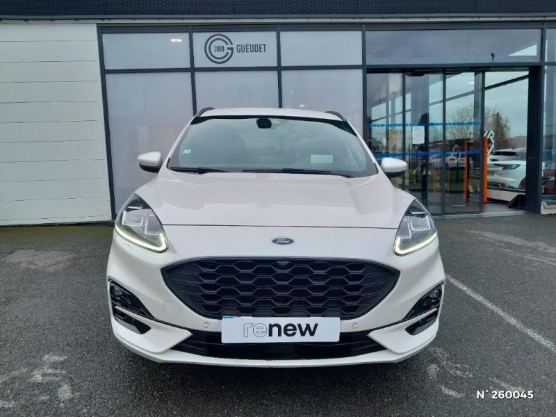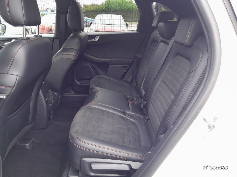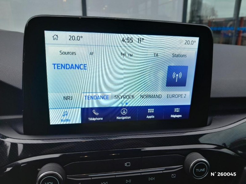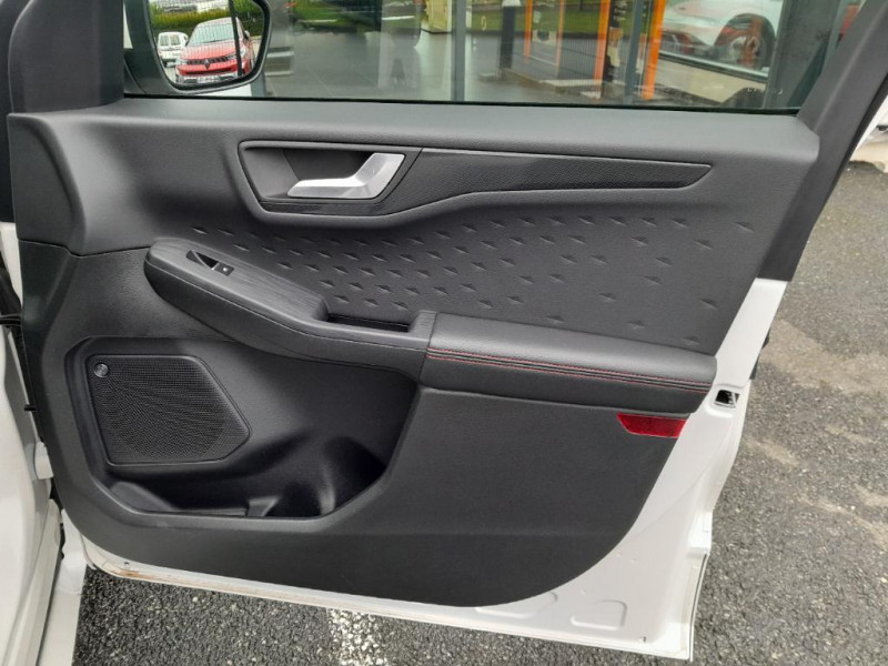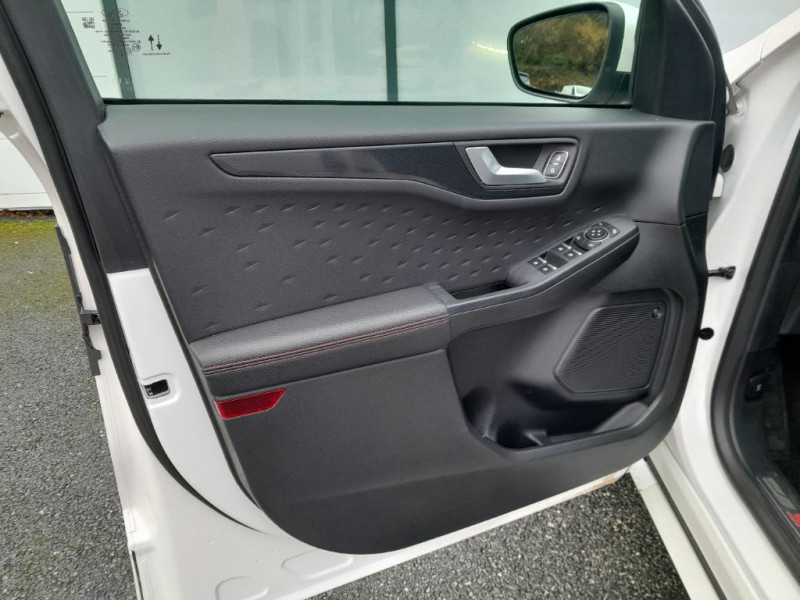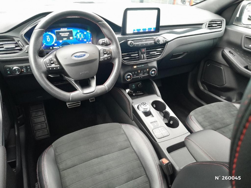 Tapis de sol AV et AR ST-Line avec surpiqures rouges / Volant à méplat 3 branches Sensico ST-Line avec surpiqures rouges / Limiteur de vitesse intelligent (affichage instantané des limitations de vitesse sur le tableau de bord) / Grille de calandre noire mate ST-Line / Système audio B&O bi-tuner AM/FM Ford SYNC3, avec écran tactile 8", DAB, commandes vocales 2 ports USB, compatible AppLink, Apple CarPlay et Android auto, 10 HP / Rétroviseurs extérieurs couleur carrosserie électriques, chauffants et rabattables avec éclairage d'approche / Phares antibrouillard AV LED à anti-éblouissement avec fonction éclairage d'angle / Console centrale avec accoudoir avec 2 prises USB / FordPass Connect avec modem embarqué 4 et fonction eCall / Sécurité enfant avec verrouillage électrique des portes AR / Désactivation de l'airbag passager / Becquet AR couleur carrosserie / 3ème appui-tête AR / Environnement noir / Disques de frein AR / Système MyKey (seconde clé programmable) / Kit de réparation des pneumatiques / Kit Carrosserie ST-Line / Plancher de coffre ajustable / Eclairage compartiment coffre / Trappe Easy Fuel / Feux de route intelligents - Commutation automatique des feux de route aux feux de croisement / Système KeyFree avec ouverture et démarrage sans clé / Système de navigation Europe et points d'intérêts Michelin / Plaques de seuil de portes AV ST-Line / Combiné d'instrumentalisation numérique 12.3" avec Ecomode / Jantes alliage 18" 5x2 branches finition St-Line avec pneus 225/60 R18 / Suspension ST-Line / Pédalier Aluminium / Prise 12V dans le coffre / Rétroviseur intérieur électrochrome / Bouton de démarrage "Ford Power" / Eclairage d'ambiance intérieur / Badge ST-Line / Sellerie Mixte tissu noir Rapton avec renforts latéraux Sensico Salerno / Ouverture du hayon à distance / Siège conducteur réglable en hauteur avec soutien lombaire (8 positions) / Siège passager réglable en hauteur avec soutien lombaire (8 positions) / Correcteur électronique de trajectoire (ESP) avec optimisation du freinage électronique / Frein de stationnement électrique / Système d'avertissement acoustique (AVAS - Alerte sonore pour piétons) / Double sortie d'échappement ST-Line / Pare-brise acoustique en verre laminé / Banquette AR coulissante rabattable (60/40) avec accoudoir central et porte gobelet / Phares LED reflector avec feux AR à LED / 4 Modes d'alimentation sélectionnables (auto, now, later, charge) / 2 câbles de recharge pour une utilisation domestique et publique / Contours de vitres noirs