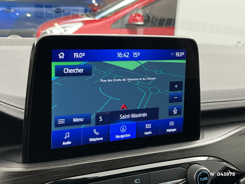 Caméra AR 180° / Feux de route intelligents - Commutation automatique des feux de route aux feux de croisement / Système de navigation Europe et points d'intérêts Michelin / Combiné d'instrumentalisation numérique 12.3" avec Ecomode / Barres de toit couleur aluminium / Console centrale avec accoudoir avec 2 prises USB / FordPass Connect avec modem embarqué 4 et fonction eCall / Siège passager réglable en hauteur avec soutien lombaire (8 positions) / Correcteur électronique de trajectoire (ESP) avec optimisation du freinage électronique / Frein de stationnement électrique / Système d'avertissement acoustique (AVAS - Alerte sonore pour piétons) / Banquette AR coulissante rabattable (60/40) avec accoudoir central et porte gobelet / Double sortie d'échappement Vignale / Kit carrosserie Vignale / Grille de calandre Vignale / Feux de route intelligent avec fonction anti-éblouissement (commutation automatique des feux de route/croisement) / Plaques de seuil de portes AV Vignale / Contours de vitres noirs / Système audio B&O bi-tuner AM/FM Ford SYNC3, avec écran tactile 8", DAB, commandes vocales 2 ports USB, compatible AppLink, Apple CarPlay et Android auto, 10 HP / Rétroviseurs extérieurs, couleur carrosserie, électriques à fonction mémoire, chauffants rabattables électriquement avec éclairage d'approche (BLIS) / Sellerie Cuir noir Windsor/Arona / Tapis de sol AV et AR Vignale / Volant Sensico finition Vignale / Badge Vignale / Jantes alliage 18" 5x4 branches finition Vignale avec pneus 225/60 R18 / Hayon mains libres avec système Keyfree - accès et démarrage sans clés / Phares LED Reflecteurs avec feux AR à LED / Siège conducteur réglable électriquement (10 positions) et à fonction mémoire / Sécurité enfant avec verrouillage électrique des portes AR / Désactivation de l'airbag passager / Becquet AR couleur carrosserie / 3ème appui-tête AR / Environnement noir / Disques de frein AR / Système MyKey (seconde clé programmable) / Kit de réparation des pneumatiques / Plancher de coffre ajustable / Eclairage compartiment coffre / Trappe Easy Fuel / Tapis de sol AV et AR Premium / Prise 12V dans le coffre / Rétroviseur intérieur électrochrome / Bouton de démarrage "Ford Power" / Eclairage d'ambiance intérieur