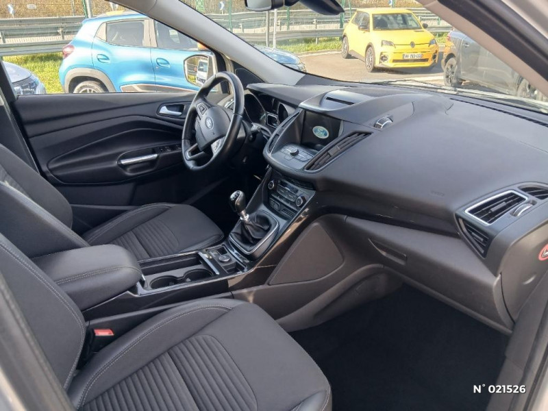 Clignotement automatique des feux de stop en cas de freinage d'urgence / ESP avec Aide au freinage d'urgence et Contrôle de stabilité de la remorque / Système de navigation Ford Sync II avec Bluetooth et commandes vocales avancées, écran couleur tactile 8", prise USB, 6HP, info trafic TMC et points d'intérêt des guides Michelin / Siège conducteur avec réglage manuel en 6 directions / Siège passager AV avec réglage manuel en 4 directions / Double sortie d'échappement / Rétroviseurs extérieurs électriques et chauffants couleur carrosserie avec rappel de clignotants / Banquette AR réglable en inclinaison et rabattable 60/40 d'une main / Chauffage auxiliaire électrique / Etui à lunettes intégré au plafond / Lève-vitres AV/AR électriques à impulsion avec fermeture globale à distance / Poches aumonières au dos des sièges AV / Pommeau de levier de vitesse cuir / Rétroviseur intérieur électrochrome / Ceintures de sécurité 3 points AV et AR / Boîte à gants avec éclairage / Essuie-glace AV automatique à détecteur de pluie / Bouton de démarrage "Ford Power" / Boucliers AV et AR couleur carrosserie / Contrôle vectoriel de couple TVC / Lèche-vitres façon chrome / Airbags rideaux 1ère et 2ème rangées / EcoMode (Système d'aide à la conduite économique) / Easy Fuel (Trappe sans bouchon avec détrompeur de carburant) / Poignées de portes extérieures et de hayon couleur carrosserie / Pare-soleil conducteur et passager avec miroir de courtoisie éclairé / Plancher de coffre ajustable en hauteur / Prises 12V à l'AR et dans le coffre / Spots de lecture de carte AV et AR / Alerte d'oubli de ceintures de sécurité AV et AR / Ceintures de sécurité AV réglables en hauteur avec prétensionneurs et limiteurs d'effort / Plaques de seuil AV avec logo Kuga / Console centrale avec accoudoir coulissant, espace de rangement, 2 porte gobelet et aérateurs AR / Tapis de sol AV et AR Premium / Siège conducteur avec réglage lombaire / Cache-bagages flexible / Eclairage intérieur à LED