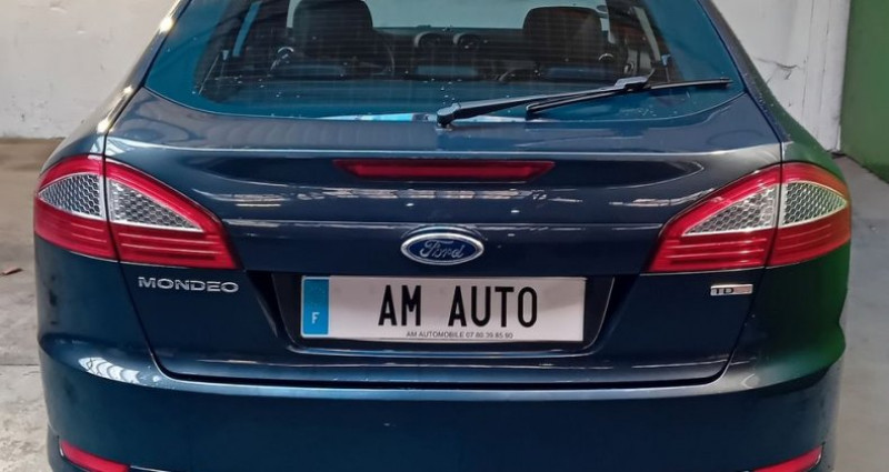 FORD MONDEO 2L TDCi Boite manuelle 6 vitesses Diesel 5 portes 5 places 140ch P.8 Mise en circulation le 18/06/2008 191583 Kms OPTIONS ET ÉQUIPEMENTS : - Allumage automatique des phares - Détecteur pluie - Détecteur pression des pneus - Jantes/roues en alliage léger 18 - Rétroviseurs extérieurs dégivrants - Rétroviseurs extérieurs rabattable électriquement - Rétroviseurs extérieurs électriques - Accoudoir arrière - Accoudoir avant - Banquette arrière partagée et rabattable - Climatisation automatique bizone - Lève-vitres arrière électriques - Lève-vitres avant électriques - Ordinateur de bord - Rétroviseur intérieur électrochrome - Siège réglable electrique - Siège conducteur à réglage lombaire - Sièges avant Sport - Vitre arrière chauffante - Antidémarrage - Appuie-tête arrière - Assistance de freinage - Garnitures intérieures métal - Sièges en cuir partiel - Airbag conducteur - Airbag passager - Fixation pour siège enfant - Phares antibrouillard - Ceinture centrale arrière 3 points - Filtre d'habitacle - Plafonnier à extinction automatique - Système anti bloquage (ABS) - Volant multifonctions - Radio, cd, Bluetooth - Usb - Auxiliaire - GPS - Fermeture centralisée - Fermeture automatique des portes - Double des clefs - Barre de toit - Détecteur de pluie - Essui glace automatique - Pare brise dégivrant - Régulateur - Limiteur de vitesse ... CT OK, révision complète effectuée, garantie A.M Automobile 67320 Drulingen