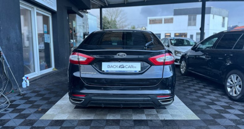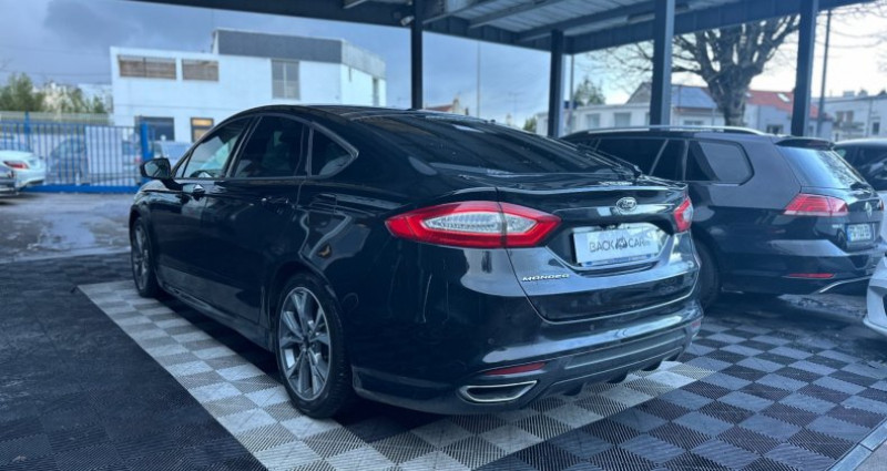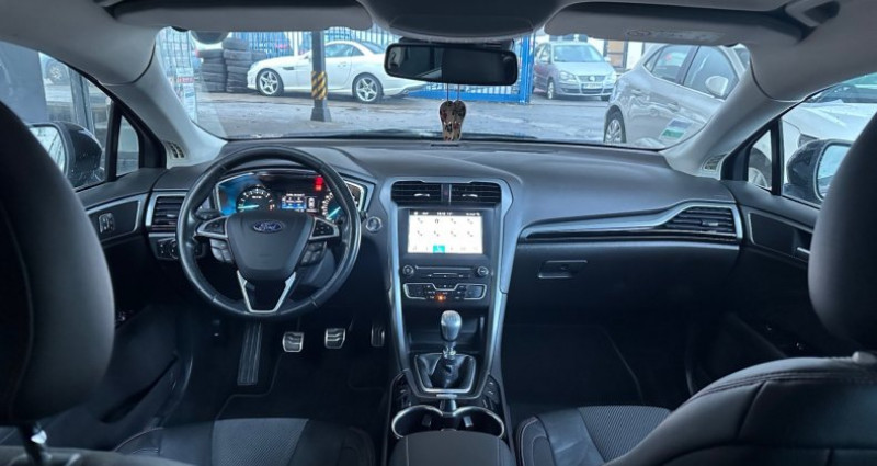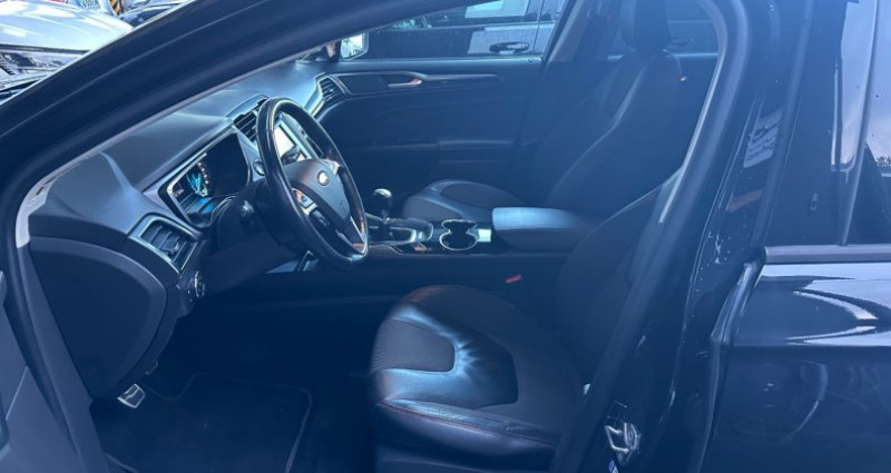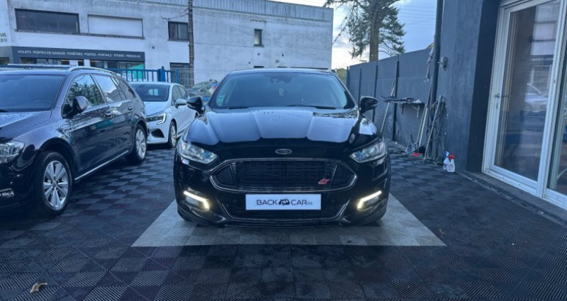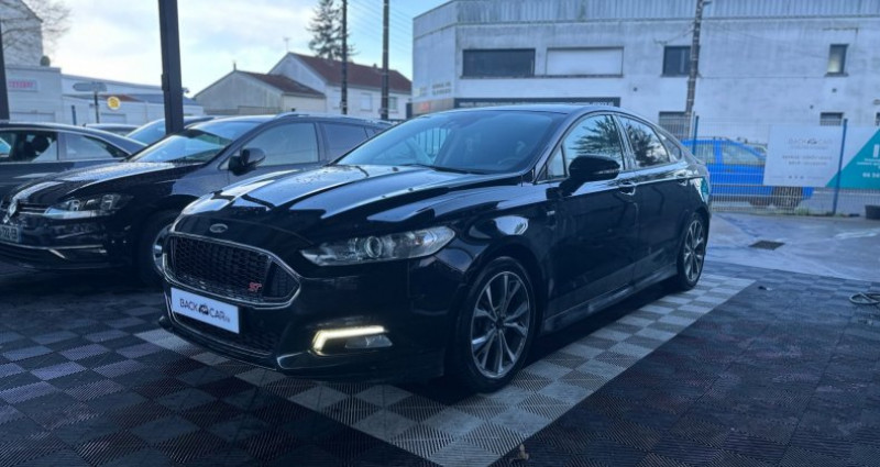 Cylindrée : 1997 cm3 EQUIPEMENTS DE SERIE ========================= ABS avec repartiteur electronique de freinage EBD Accoudoir central AR avec trappe a ski Aide au demarrage en cote Aide au stationnement AV/AR Allumage automatique des phares Assistance au freinage d'urgence EBA avec declenchement automatique des feux de detresse Console centrale AV avec accoudoir integre rabattable, rangement et 2 porte-gobelets ESP Essuie-glace AV automatiques Feux AR a LED Feux de jour AV a LED Fixations ISOFIX aux places AR exterieures Frein de parking electrique Grille de calandre superieure avec baguettes chromes Jantes alliage 18 5x2 branches Kit carrosserie complet My Key Pedalier Sport en Aluminium Phares antibrouillard AV Phares halogenes avec feux d'angle fixe Poignees de portes exterieures couleur carrosserie Regulateur et limiteur de vitesse Roue de secours galette Sellerie Tissu Sport avec surpiqures rouges Seuils de portes specifiques ST-Line Sieges conducteur et passager AV reglables en hauteur avec reglages lombaire integres Tapis de sol AV et AR Volant cuir perfore et levier de vitesses gaines cuir specifiques ST-Line Volant reglable en hauteur et en profondeur OPTIONS PRESENTES SUR CE VEHICULE ========================= Active Park Assist - Stationnement semi-automatique (perpendiculaire et parallele) : 250.00€ Alarme perimetrique et volumetrique avec double verrouillage centralise : 350.00€ Camera de recul : 300.00€ KeyFree System - Systeme d'entree et de demarrage mains libres : 400.00€ Ordinateur de bord couleur 10 avec rappel du systeme de navigation : 300.00€ Phares Ford Dynamic LED - Phares adaptatifs a LED avec feux de jour a LED et clignotants AV : 1200.00€ Points de fixation pour filet de separation (1ere rangee) : 50.00€ Regulateur de vitesse adaptatif : 1000.00€ Retroviseurs exterieurs electriques chauffants et rabattables electriquement avec lumiere d'approche : 0.00€ Rideaux de pare-soleil integres aux portes AR : 150.00€ Sellerie mixte Cuir/Tissu avec sieges AV chauffants et reglage electrique 10 directions a memoire : 1000.00€ Suppression des badges EcoBoost et Mondeo : 0.00€ Systeme de navigation Sony Ford SYNC III avec Bluetooth, commandes vocales avancees, ecran : 500.00€ Toit panoramique avec rideaux pare-soleil : 1000.00€ Vitres AR surteintees : 150.00€ Sièges chauffants : 0.00€