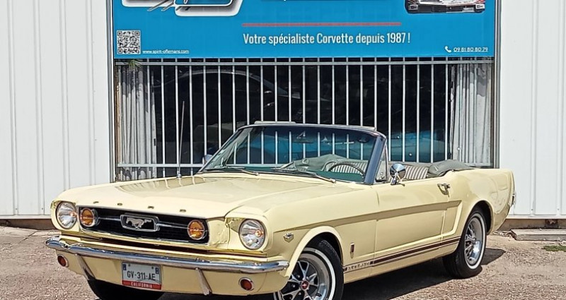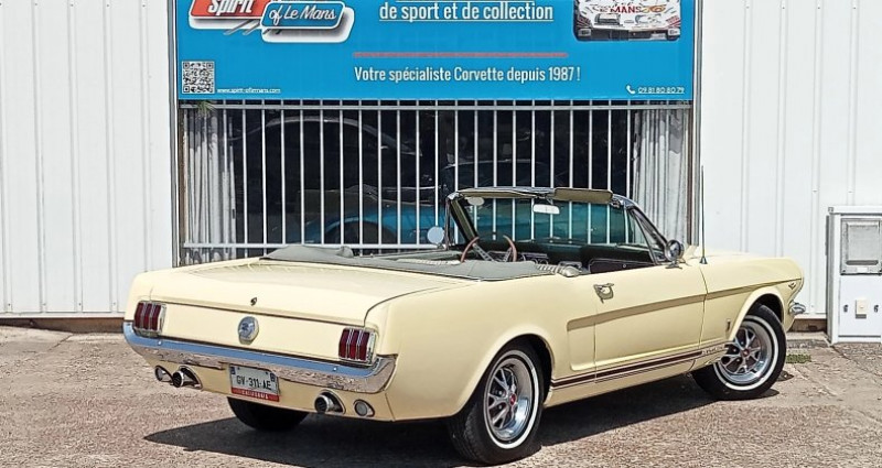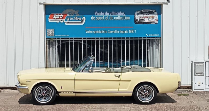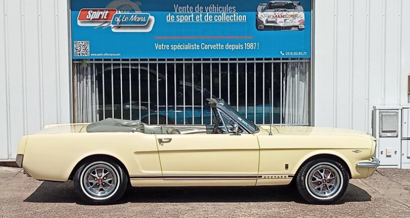 Ford Mustang GT Cabriolet 1966, V8 289ci 225cv, boite automatique, freins à disques assistés, jantes Styled Steel, double ligne d'échappement, couvres culbus alu Cobra, fog-light, capote électrique. Intérieur Pony Luxury, tableau de bord bois, volant bois, rally-pac, radio accessoires, rétroviseur droit, couvre capote. Authentique Mustang GT Cabriolet de 1966. Couleur extérieur code 8 Springtime Yellow et code couleur intérieur 68 Ivy Gold and White (Luxury). Cette Mustang est entièrement conforme à sa data plate et à toutes les spécifications des GT. Très agréable à rouler. Données supplémentaires - - Volant de direction