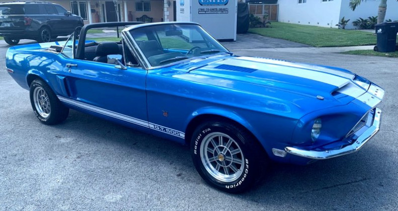 Cet exemplaire remarquable et exceptionnel de GT500 Tribute Convertible, datant de 1968, est parfaitement restauré en bout de chassis et présente une renaissance remarquable de ce modèle mythique. Equipé du puissant moteur V8 de 428 cm3, cet exemplaire dispose également de direction assistée, freinages à disques puissants, transmission automatique, roues alliage Shelby, tôle motorisée, console, capot, spoiler arrière, engrenage de différentiel Posi traction, deux échappements, renfort d'essieu arrière et barre anti-renversement, compteur de vitesse, climatisation et toutes les insignes et bandes Shelby. Cette voiture est une rareté véritable. L'ensemble de la voiture, moteur, transmission, freinage, essieu arrière, suspensions, sont entièrement neufs, avec des pneus et des accessoires neufs à leur tour. La feuille de construction est présente et les documents montrent que des milliers de dollars ont été dépensés pour la restauration, avec des preuves photographiques. Incroyablement raffinée, cette magnifique convertible serait un beau complément à n'importe quelle collection automobile.. Ce descriptif est basé sur les éléments communiqués par le propriétaire avec un traitement assisté. Merci pour votre indulgence en cas de formulation perfectible. Provenance : Florida. Disponibilité : 7 semaines, clés en main. 69 000 € tout compris (importation, taxes, procédure d'immatriculation). Annonce publiée le 02/10/2025