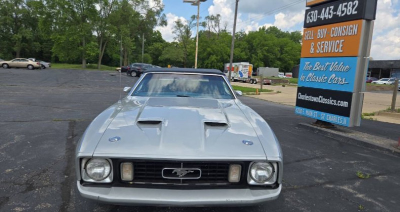 Un 1973 Ford Mustang Convertible est présentement disponible en neuf conditions générales. Sa carrosserie est de couleur gris et son intérieur, de couleur bleu. Il est équipé d'une transmission automatique à trois vitesses et d'un moteur V8 de 5, 8 litres. La voiture a recensé 91 223 milles et présente de nombreuses améliorations, notamment une nouvelle distribution HEI, des fils d'allumage, un changement d'huile, un réfrigérant et de nouveaux pneus et échappements. L'intérieur est également en très bon état.. Ce descriptif est basé sur les éléments communiqués par le propriétaire avec un traitement assisté. Merci pour votre indulgence en cas de formulation perfectible. Provenance : Illinois. Disponibilité : 7 semaines, clés en main. 28 000 € tout compris (importation, taxes, procédure d'immatriculation). Annonce publiée le 15/10/2025