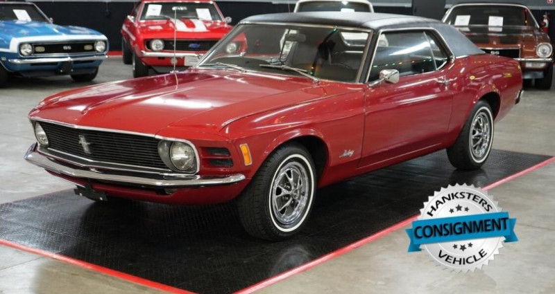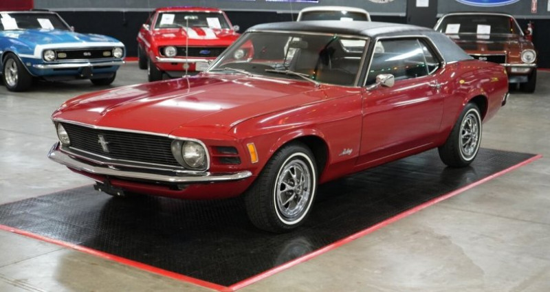 Cet 1970 Ford Mustang est un modèle vintage qui combinent style timeless et performance classique grâce à un moteur V8 Small Block Ford de 302 pouces cubes en configuration avec un transmission C4 automatique. Equipé d'une suspension arrière Ford 8 pouces avec des vitesse de démultiplication de 2.80, il assure un croisement confortable tandis que les freins et la direction assistés assurent une maniabilité facile. Sa finition interne est constituée d'un cuir noir et de roues noires de 14 pouces OEM en acier avec des caps de roues et des pneus Enterprise Republic 205/70/R14. Sous le capot, il présente toutes les composantes originales, dont l'intake, le carburateur à quatre barres, l'allumage et le système de refroidissement. Le véhicule est peint en rouge vif avec un toit de cuir noir.. Ce descriptif est basé sur les éléments communiqués par le propriétaire avec un traitement assisté. Merci pour votre indulgence en cas de formulation perfectible. Provenance : Pennsylvania. Disponibilité : 7 semaines, clés en main. 40 000 € tout compris (importation, taxes, procédure d'immatriculation). Annonce publiée le 16/10/2025