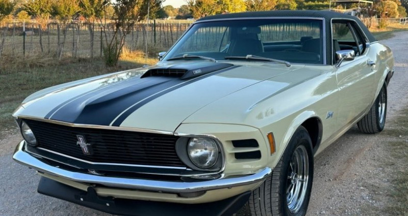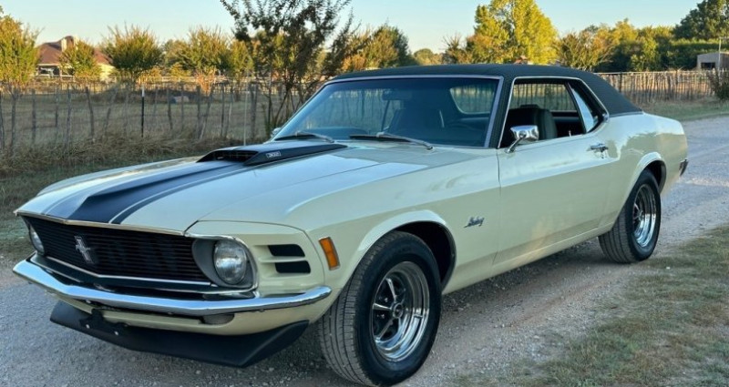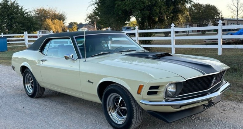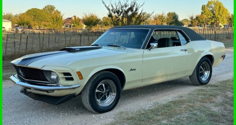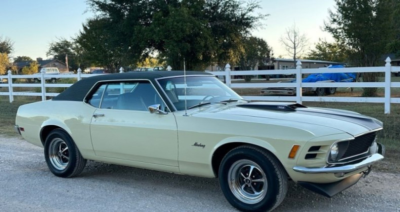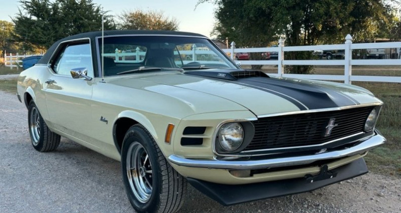 Le présent modèle de 1970 Ford Mustang Coupe se distingue par des options rares, notamment une toiture en tissu Green Houndstooth, des feux de recul arrière originaux, un système climatisé complet mis à jour et une transmission automatique C4 à 302 V8 2bbl. Le véhicule a été récemment réparé et mis à jour, tout en conservant une grande partie originale et se trouvant en très bon état général. Sa documentation originale, incluant une guichette d'origine, un carnet de garantie d'origine et des plaques bleues originales de Californie, sont inclus. Le moteur est en parfait état de marche et l'extérieur n'a aucun signes de rouille. Le véhicule a passé toute son existence en Californie du Sud jusqu'en 2023, puis en Texas du Nord.. Ce descriptif est basé sur les éléments communiqués par le propriétaire avec un traitement assisté. Merci pour votre indulgence en cas de formulation perfectible. Provenance : Texas. Disponibilité : 7 semaines, clés en main. 39 500 € tout compris (importation, taxes, procédure d'immatriculation). Annonce publiée le 16/10/2025