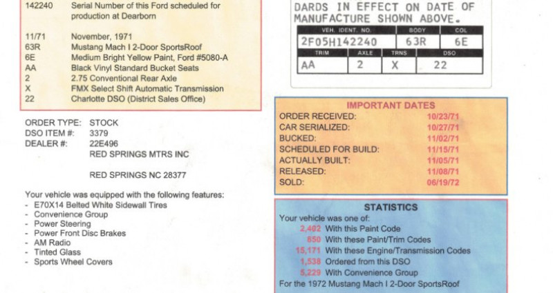 Ce 1972 Ford Mustang est un véhicule de collection doté d'un intérieur noir élégant et d'un extérieur jaune vibrant. C'est un coupé équipé d'un moteur à huit cylindres puissant et d'une transmission automatique, ce qui en fait un voyage à la fois doux et excitant. Il dispose de fonctionnalités telles qu'un système stéréo AM/FM Bluetooth modifié, une spoiler arrière, des clapets, une climatisation, un volant à assistance de direction et un panneau de bord réaménagé. Cette Mustang est non seulement pratique, mais également remplie de commodités et de style. La montre de vitesse, le compas et les ailerons de pare-chocs fonctionnent. Le propriétaire a dépensé environ 10 000 $ depuis qu'il l'a acquis en juillet 2024. Les améliorations incluent un nouvel accumulateur, une nouvelle tuyauterie d'échappement, des ressorts torsion d'essieu de coffre solide, un système stéréo Bluetooth et des haut-parleurs neufs, des coussins de rangement, des nouveaux panneaux de porte, un carburateur à quatre corps Holly neuf, un filtre d'essence, un filtre de transmission/gasket, un réservoir de carburant retiré, nettoyé et remonté, des joints de fenêtre, un réservoir de liquide de lavage des ailerons de pare-chocs, des vitres de la porte avant neuves remplacées, des ceintures de sécurité (ceintures de taille), un changement de rotor, de cap, de points et de joint de culasse arrière, des disques de frein remplacés et une boîte de vitesses réparée. Le propriétaire a fait son possible pour mettre ce véhicule en état optimale. Il ne dispose plus d'espace dans son garage et ne souhaite pas laisser le véhicule en dehors. Il l'a acheté pour 50 000 $, et y a dépensé encore 10 000 $. Il essaie de le vendre pour un montant raisonnable. Il ne peut pas offrir de garantie ou de garantie sur une voiture de 53 ans, mais a fait son possible. Le 25 novembre 2024, à 07 h 09, le vendeur a ajouté les informations suivantes : La voiture ne sera libérée qu'une fois que le paiement sera effectué à fond. Je serai disponible pour aider à coordonner le ravitaillement avec votre transporteur choisi. Le 25 novembre 2024, à 07 h 23, le vendeur a ajouté les informations suivantes : J'ai tous les documents de service et un voile pour la voiture.. Ce descriptif est basé sur les éléments communiqués par le propriétaire avec un traitement assisté. Merci pour votre indulgence en cas de formulation perfectible. Provenance : New York. Disponibilité : 7 semaines, clés en main. 40 000 € tout compris (importation, taxes, procédure d'immatriculation). Annonce publiée le 14/11/2025