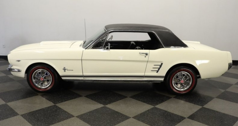 1966 Ford Mustang Coupe, Wimbledon White, Black Interior, 289 V8, 3 Speed Automatic, RWD, 85, 115 miles, BFG Red Line tires, AM/FM/Cassette, Air Conditioning, Seatbelts, Heat, Defrost, Coil Springs, Shocks, Front Sway Bar, Leaf Springs, 14 Inch Steel Styled Wheels, Dual Exhaust. Provenance : Florida. Disponibilité : environ 7 semaines, clés en main. 40 500 € tout compris (importation, taxes, procédure d'immatriculation). Annonce publiée le 24/11/2025