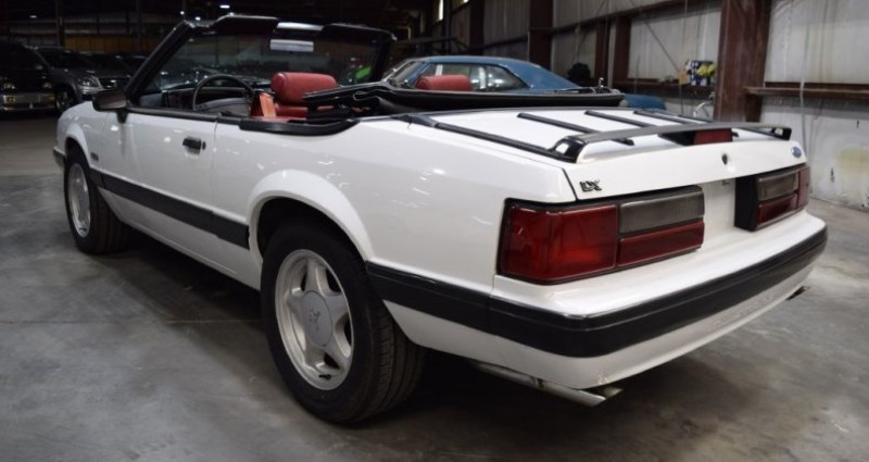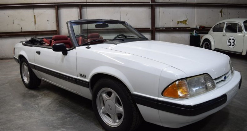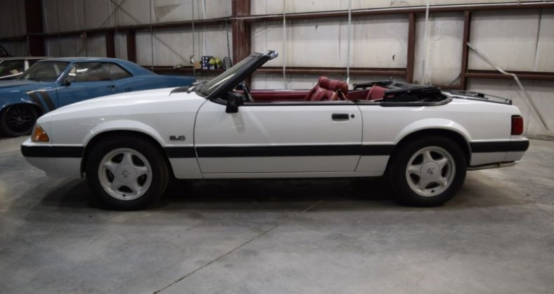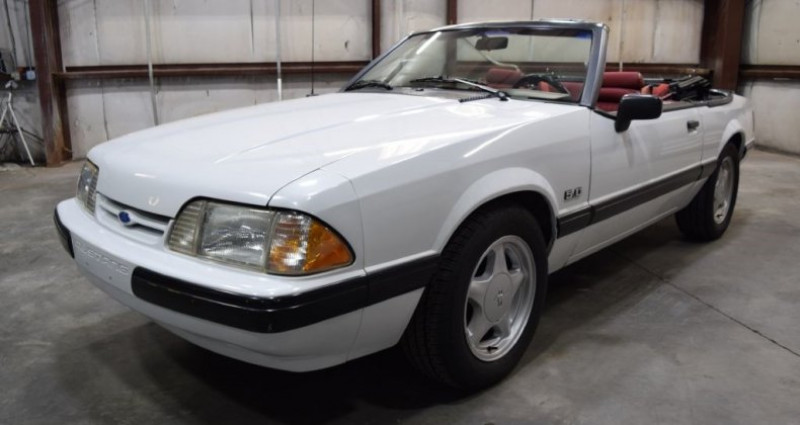 1991 Ford Mustang LX 5.0L convertible, Stock #: 11749, Exterior Color: WHITE, Interior Color: RED, Body Type: Convertible, Transmission: Automatic, Fuel Type: Gasoline, Engine: 5.0L Gas V8, Mileage: 79, 221, Drivetrain: Rear Wheel Drive, 2-Owner Car. Provenance : Utah. Disponibilité : environ 7 semaines, clés en main. 17 000 € tout compris (importation, taxes, procédure d'immatriculation). Annonce publiée le 25/11/2025