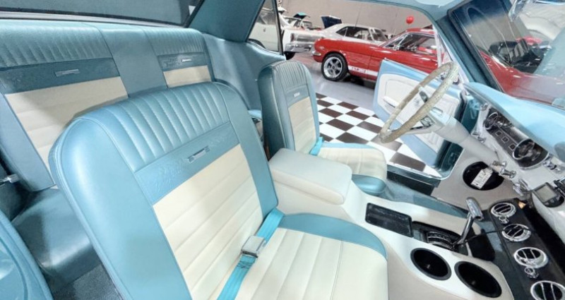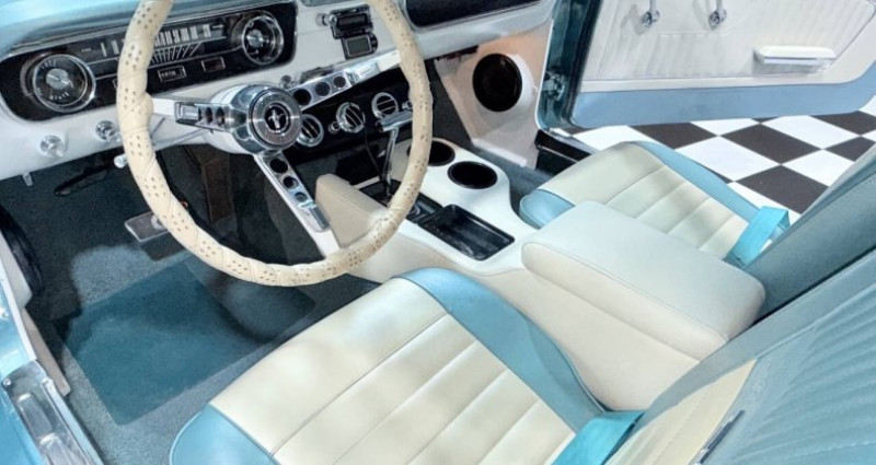 1965 Ford Mustang, Turquoise Exterior, White Interior, Coupe, Automatic 3-Speed, V8 5.0L, 87, 883 Mileage, AOD Transmission, Power Steering, Holley 4 Barrel Carburetor, Front Disc Brakes, Aluminum Wheels with Chrome Finish, Alabama. Provenance : Illinois. Disponibilité : environ 7 semaines, clés en main. 42 000 € tout compris (importation, taxes, procédure d'immatriculation). Annonce publiée le 25/11/2025