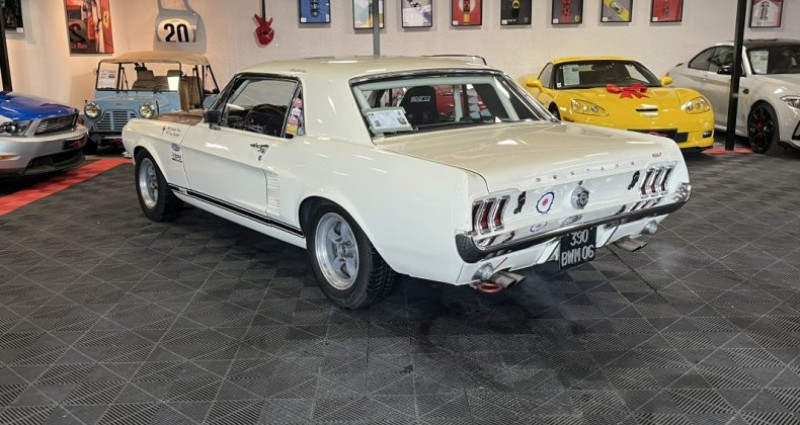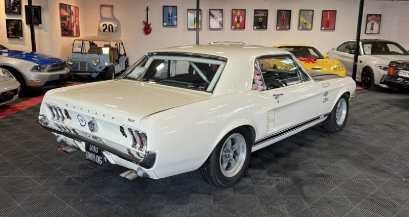 Cylindrée : 6400 cm3 - Moteur V8 6 - 4 L (390 cu in) - Boîte de vitesses manuelle à 4 rapports - Carburateur quadruple corps - Système de freinage assisté - Disques de frein avant - Suspension renforcée GT - Échappement double - Prise d'air sur le capot - Tableau de bord à instruments ronds GT - Volant sport - Jantes acier 14 pouces style GT - Écussons GT - Compte-tours - Radio AM - Sièges baquets avant - Sellerie vinyle - Pneus à lettres blanches - Essence - Peinture métallisée (option) - Vitres teintées (option) 1967 Ford Mustang GT 390 FIA — Réplique Monte Carlo 1967 Châssis : 7T01S205662 Carte grise française • Passeport technique FIA • Réplique fidèle de la Mustang engagée au Rallye Monte-Carlo 1967 par Ford France conduite par Johnny Hallyday • Restauration complète par Bullit Racing en 2007 • Base authentique de GT 390 Hardtop (S-Code) • Plusieurs participations au Monte Carlo Historique La Ford Mustang inca e dès son lancement en 1964 l’esprit des muscle cars américains, alliant puissance et style affirmé. La version GT 390 de 1967, équipée d’un V8 390 ci à carburateur quadruple corps développant 320 chevaux, est l’une des déclinaisons les plus emblématiques, notamment pour son engagement en rallye. L’exemplaire présenté est une réplique fidèle de la Mustang engagée par Ford France lors de l’édition 1967 du Rallye Monte Carlo. Produite à l’usine de Metuchen (New Jersey), il s’agit d’une véritable GT 390 Hardtop S-Code, préparée dans l’esprit des voitures officielles. Elle a bénéficié en 2007 d’une restauration complète confiée au spécialiste Bullit Racing, réalisée sans contrainte budgétaire et représentant plus de 50 000 euros de travaux. La caisse a été entièrement mise à nu et refaite, tandis que la mécanique a été soigneusement révisée et préparée en vue d’un usage en compétition FIA, dans le respect de la fiche d’homologation Groupe 1. Dotée d’un passeport technique FIA, cette Mustang a déjà participé à plusieurs éditions du Monte Carlo Historique, confirmant la qualité de sa préparation et sa fiabilité. Sa présentation reprend fidèlement la livrée de l’époque utilisée par Ford France, tout en intégrant les éléments techniques nécessaires à un engagement en régularité ou en compétition. Cet exemplaire représente une opportunité rare de prendre le départ d’épreuves historiques à bord d’une authentique GT 390 préparée dans les règles de l’art, conjuguant puissance américaine et histoire du rallye européen.